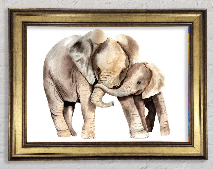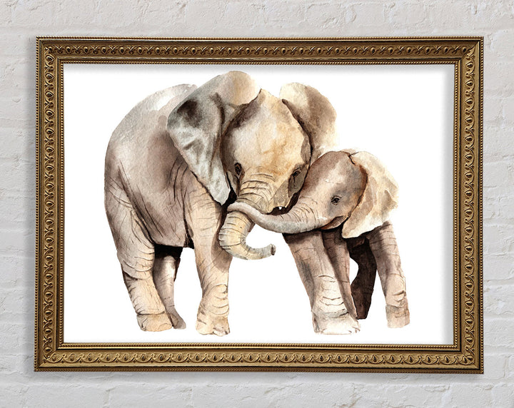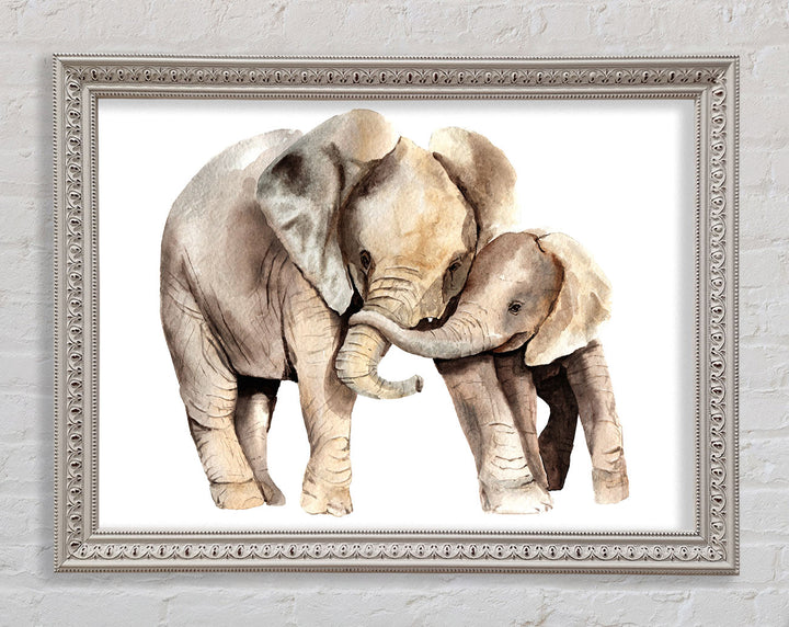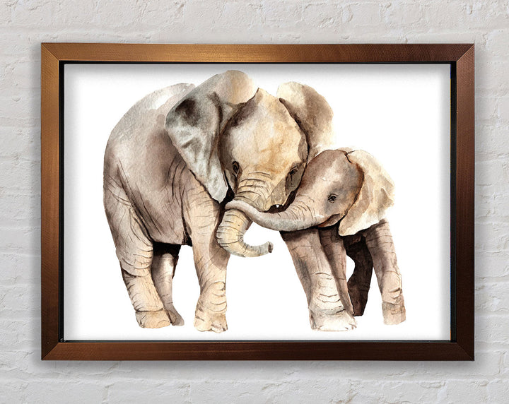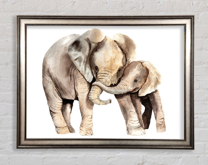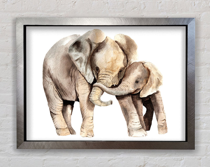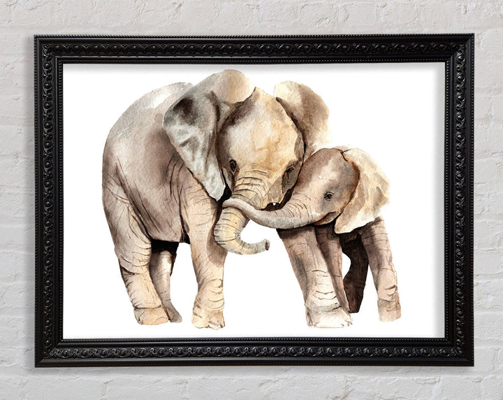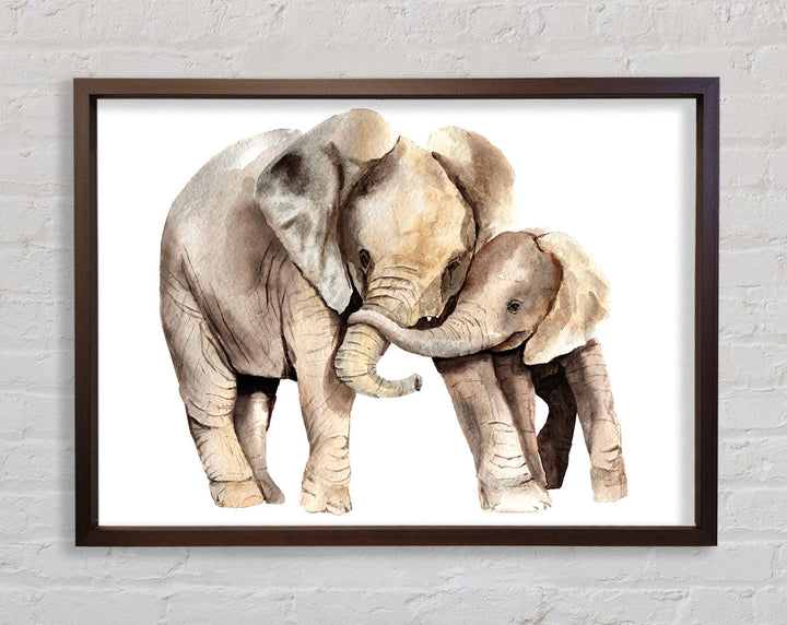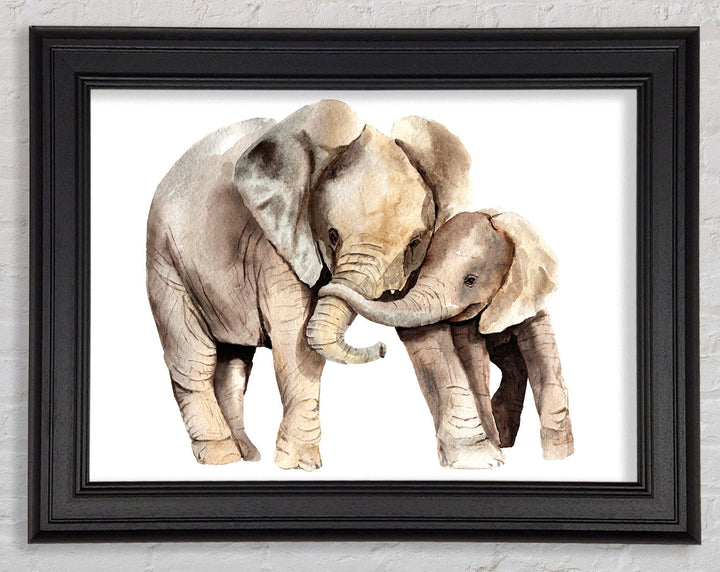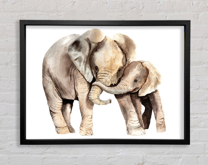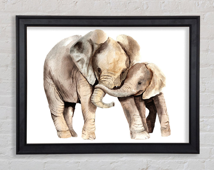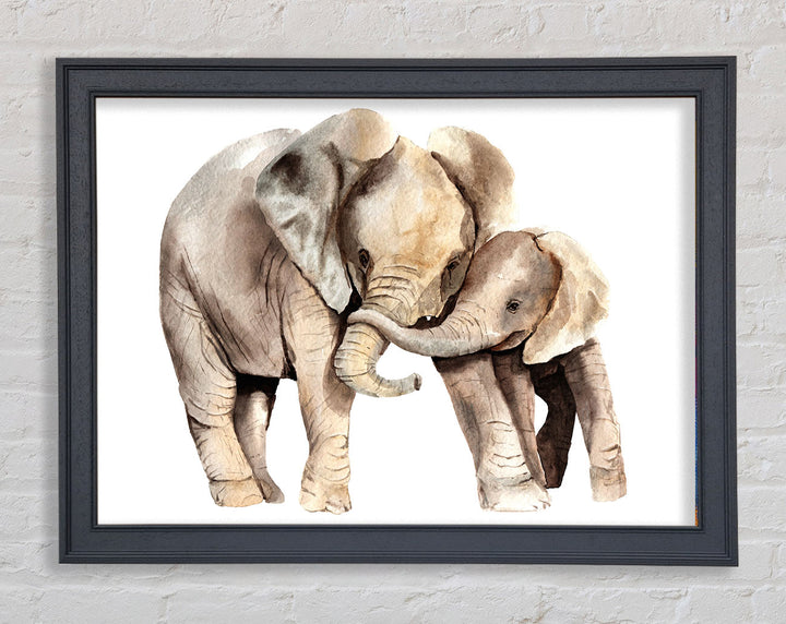 Elephants Holding Trunks Framed Print