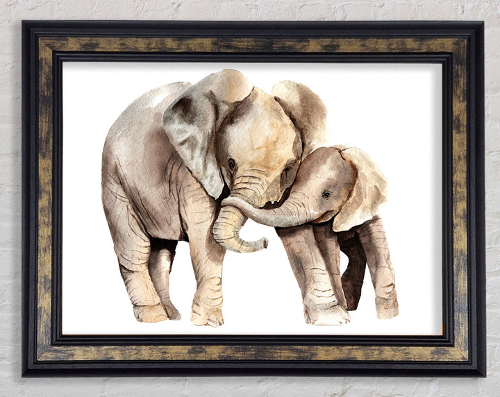 Introduce a touch of elegance and charm to your home with the Elephants Holding Trunks Framed Print. This captivating piece of framed art showcases two elephants tenderly holding trunks, symbolizing love and unity. Available in six sizes ranging from small to oversized, it fits perfectly into any space, whether it's a cozy corner or a grand living room. With a variety of colors to choose from, you can easily match it to your existing decor. Each print is handmade in the United Kingdom, ensuring exceptional quality and craftsmanship. Ready to hang, this delightful artwork makes decorating effortless. Elevate your home with this unique and heartwarming framed print today!