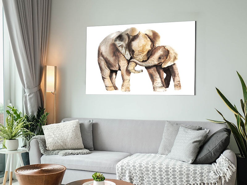 Elephants Holding Trunks Printed on brushed aluminium dibond. A modern way to display art and easy to maintain.