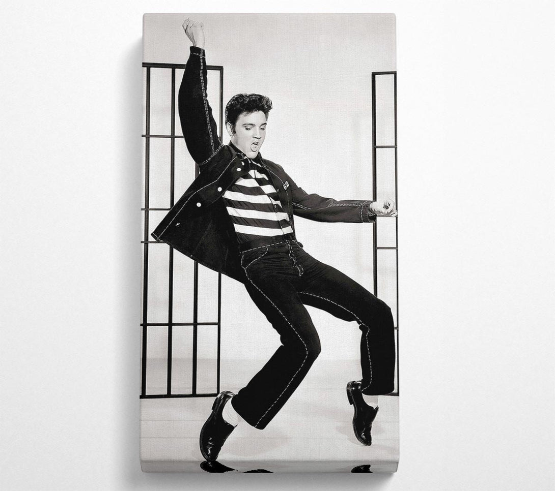Elvis Jail House Rock B n W canvas, printed on coated polyester canvas. Mounted on to a 44mm box frame, ready to hang.