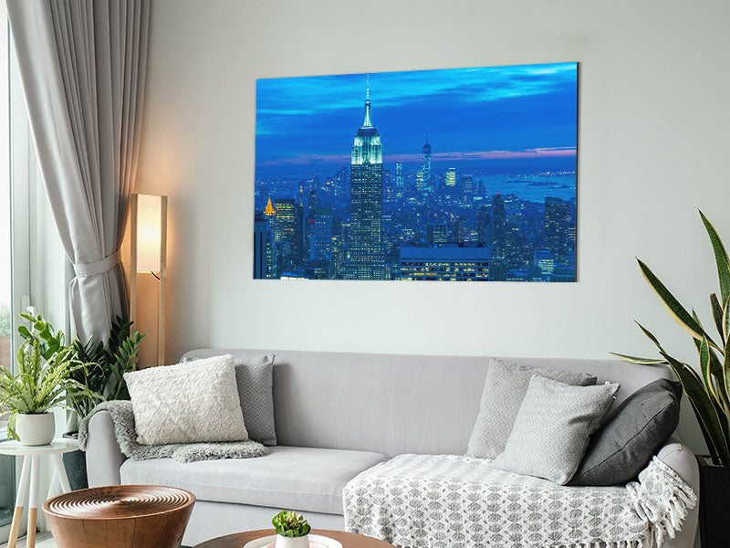 Empire State Building Blues Printed on brushed aluminium dibond. A modern way to display art and easy to maintain.