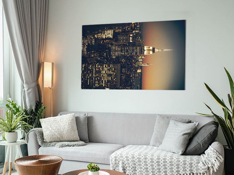 Empire State Building Light Up Printed on brushed aluminium dibond. A modern way to display art and easy to maintain.