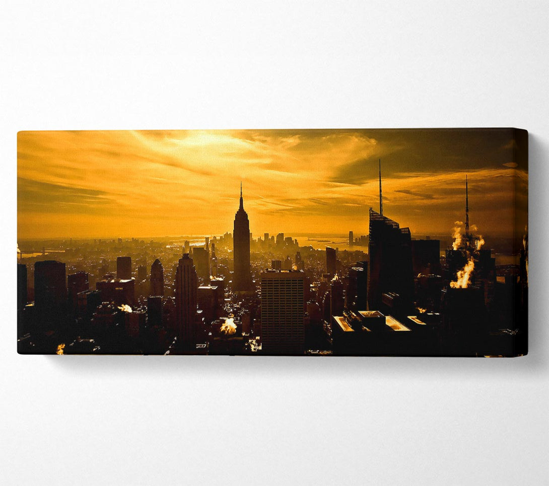 Picture of Empire State Building New York City Golden Sunset Panoramic Canvas Wall Art