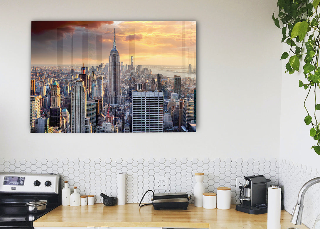Empire State Building Skies acrylic print, UV printed onto 5mm thick acrylic glass. Comes with everything you need to hang on your wall.