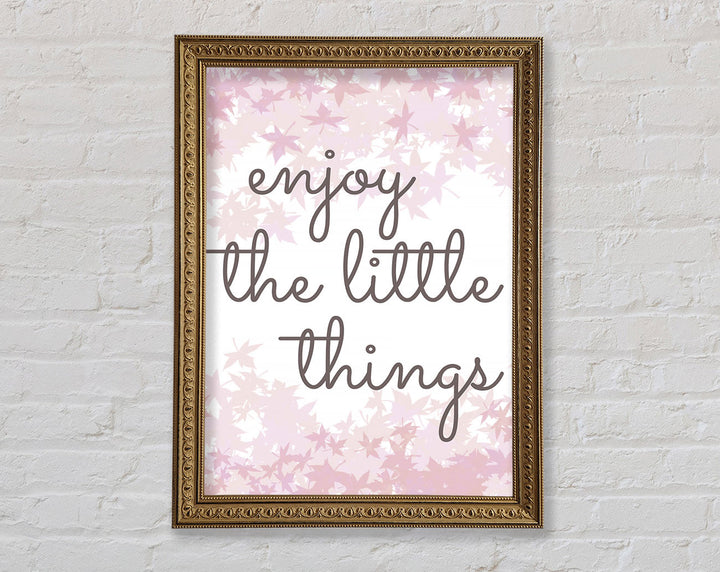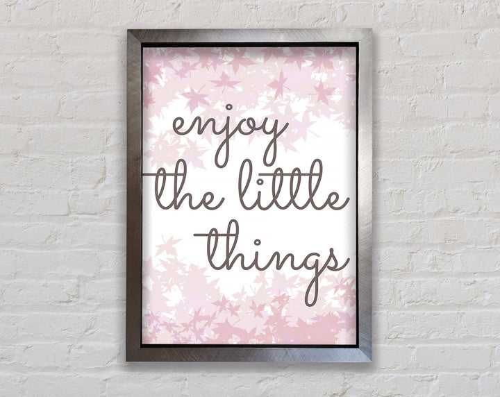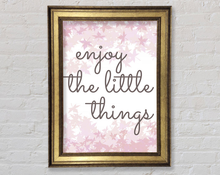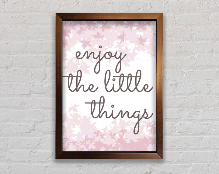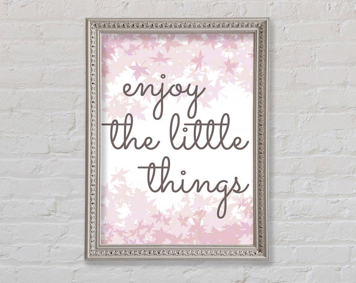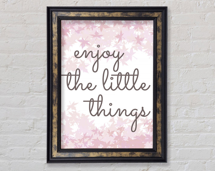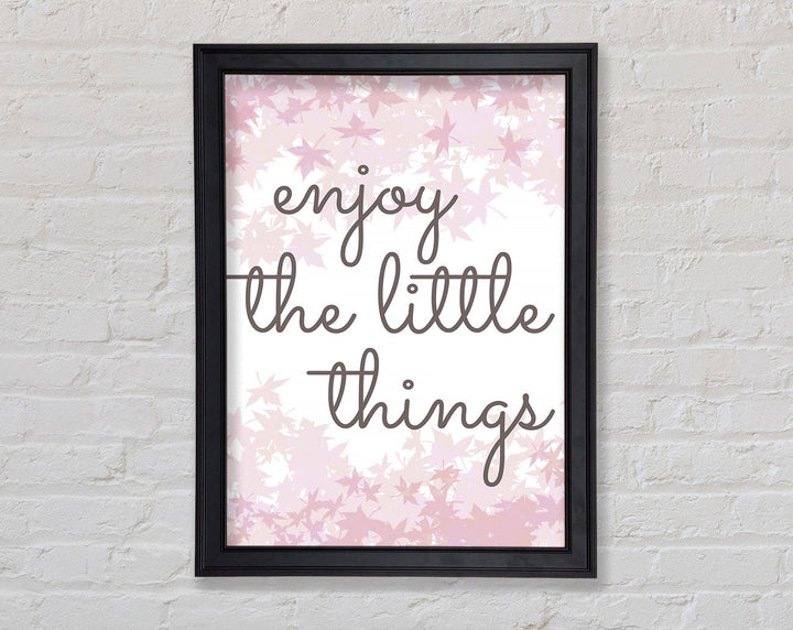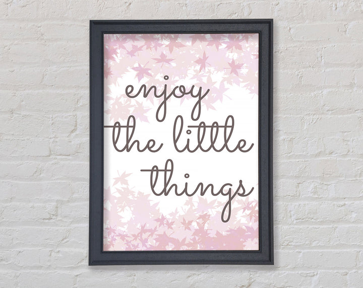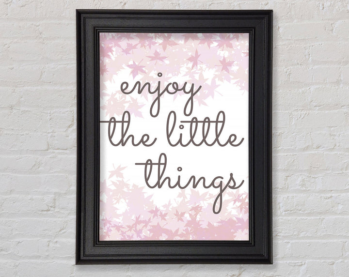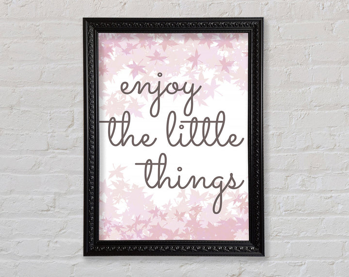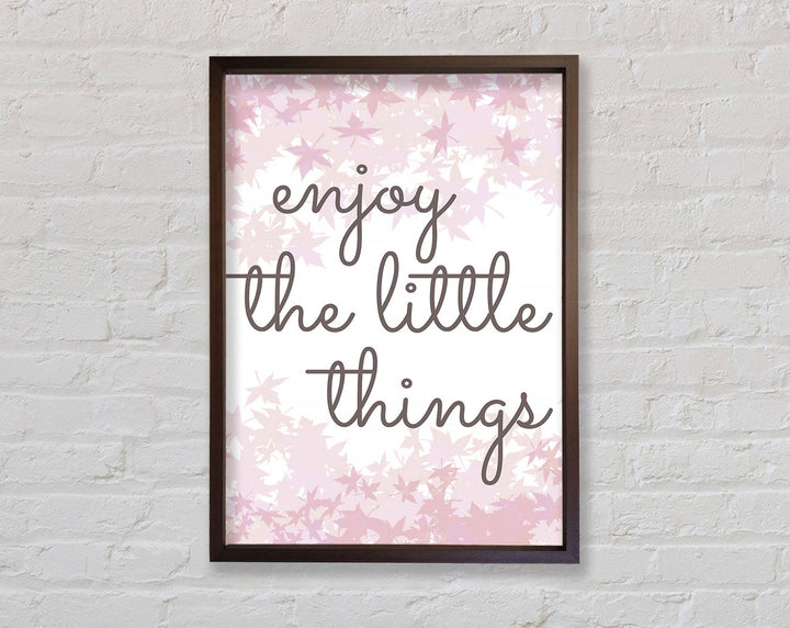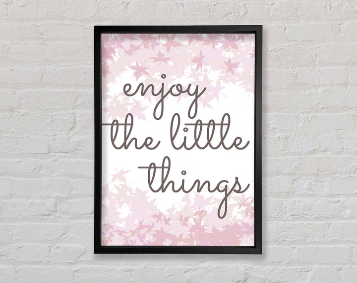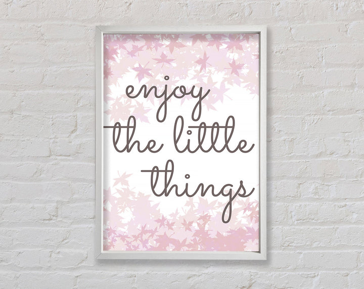 Brighten up your walls with the "Enjoy The Little Things" framed print, a beautiful reminder to savor life's small moments. This framed art is crafted with care in the United Kingdom and comes in six different sizes, ranging from small to oversized, to perfectly fit any space. Available in a variety of colors, this print can complement any decor style, adding a touch of elegance and positivity to your home. Each piece is handmade, ensuring unique quality and attention to detail. Ready to hang right out of the box, it's an easy and stylish way to enhance your living space.