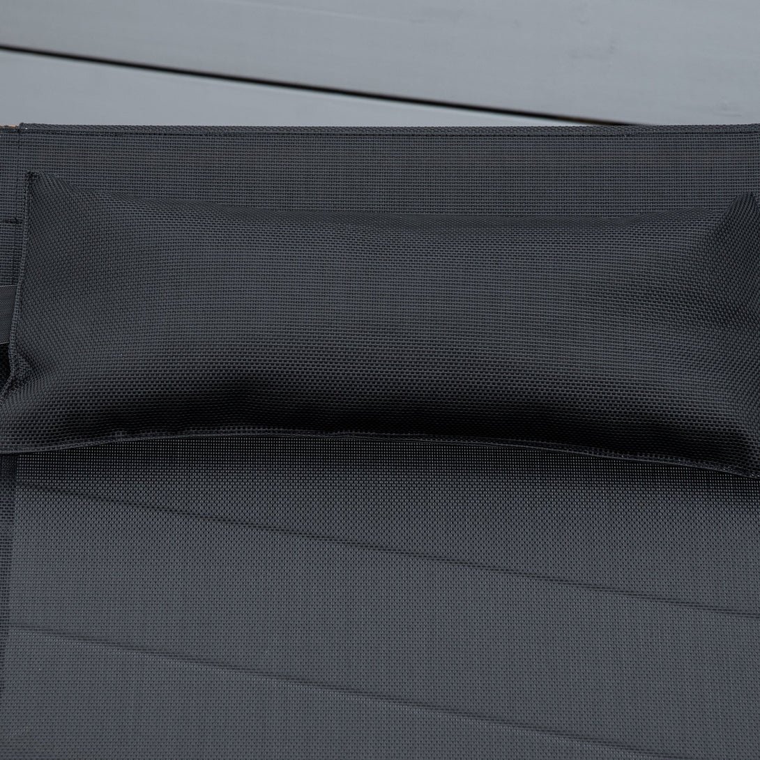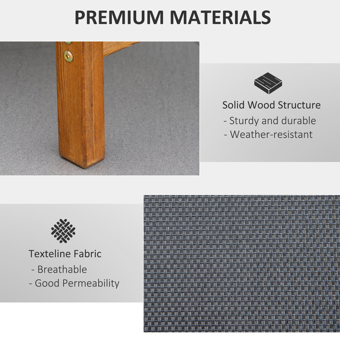 Outdoor lounging just got a lot better. Pair your days outside with this Outsunny lounger for complete relaxation. Using solid wood to form the frame, it is able to handle up to 120 kg effortlessly, with a three-level adjustable back for in-control supports crafted into a smooth curved shape that better adapts to your body shape. It's fitted with a breathable mesh fabric seat that holds your body in place, with a removable pillow for extra comfort and support to the head and neck.