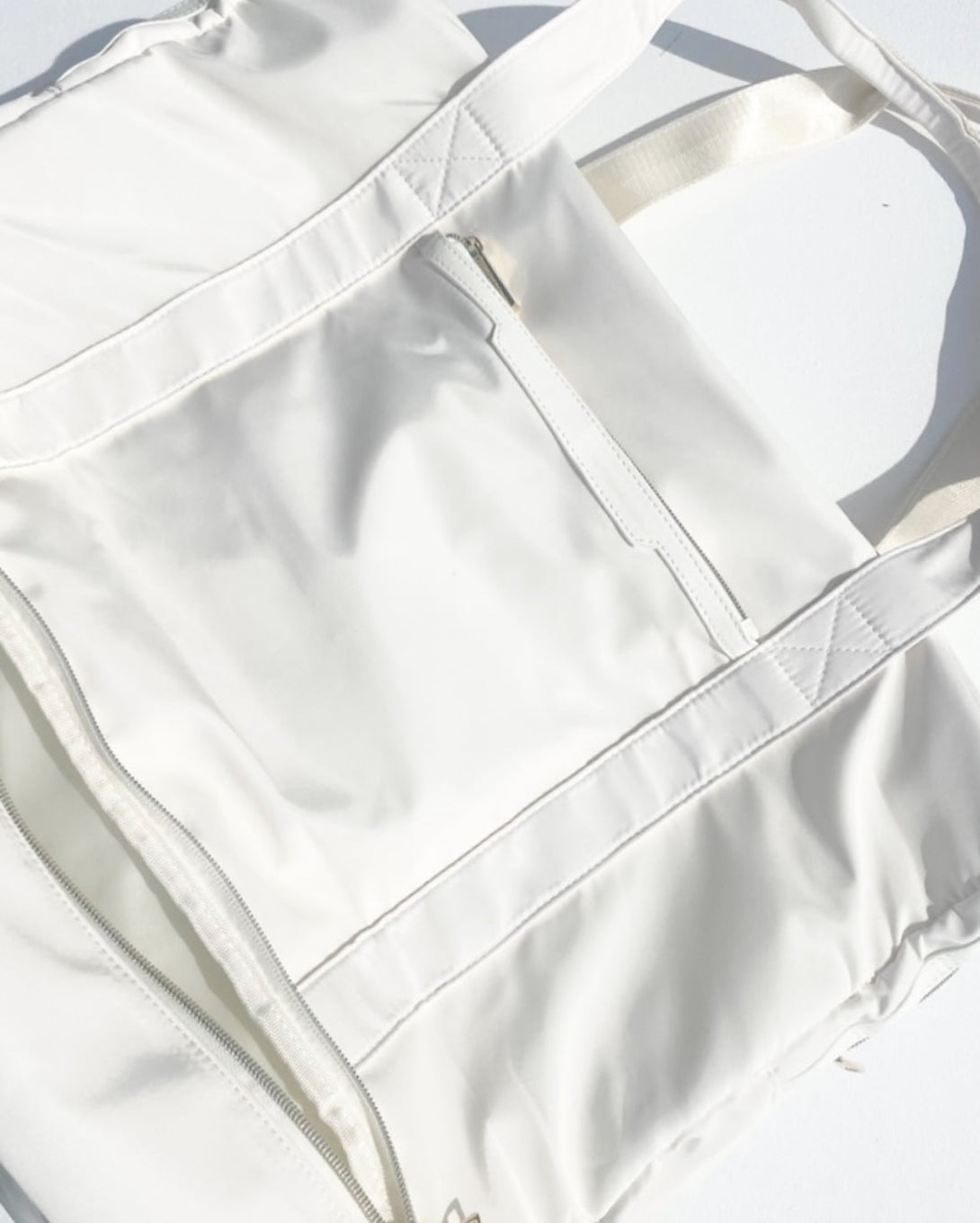 Made from recycled nylon, this eco-friendly bag not only looks stylish but also contributes to a sustainable lifestyle. The generous dimensions of D: 22cm, W 46cm, H 33cm provide ample space for all your essentials without compromising on style or functionality.