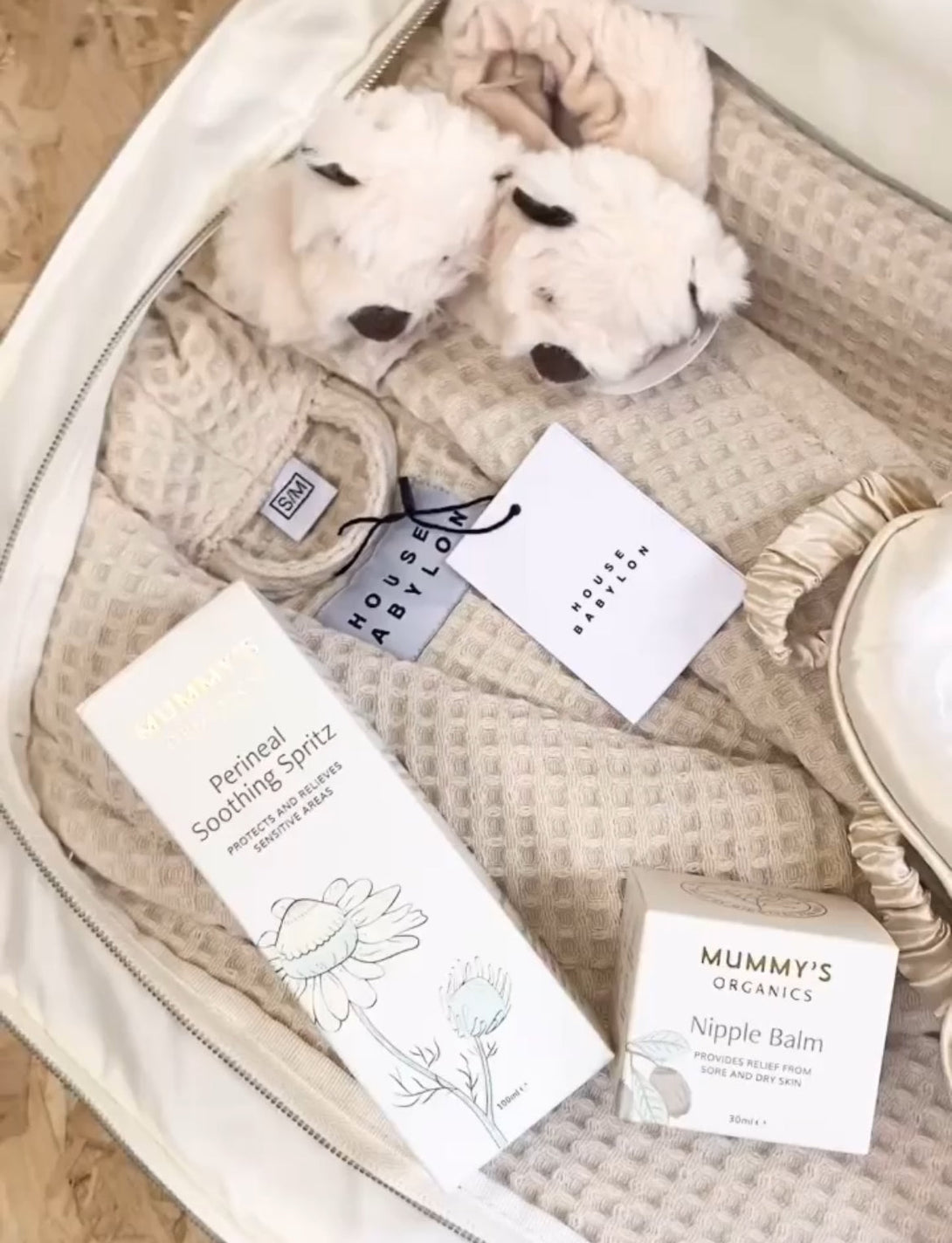 And the best part? Our pre-packed bags come filled with essentials to see you through your hospital stay and beyond, including Mummy Organics Nipple Balm, Lip Balm, Little Bramley Body Wash and Body Lotion, eco by naty nappies, baby wipes, breast pads, nappy bags, towelling slippers, vegan sweets, and a handy hospital list.
