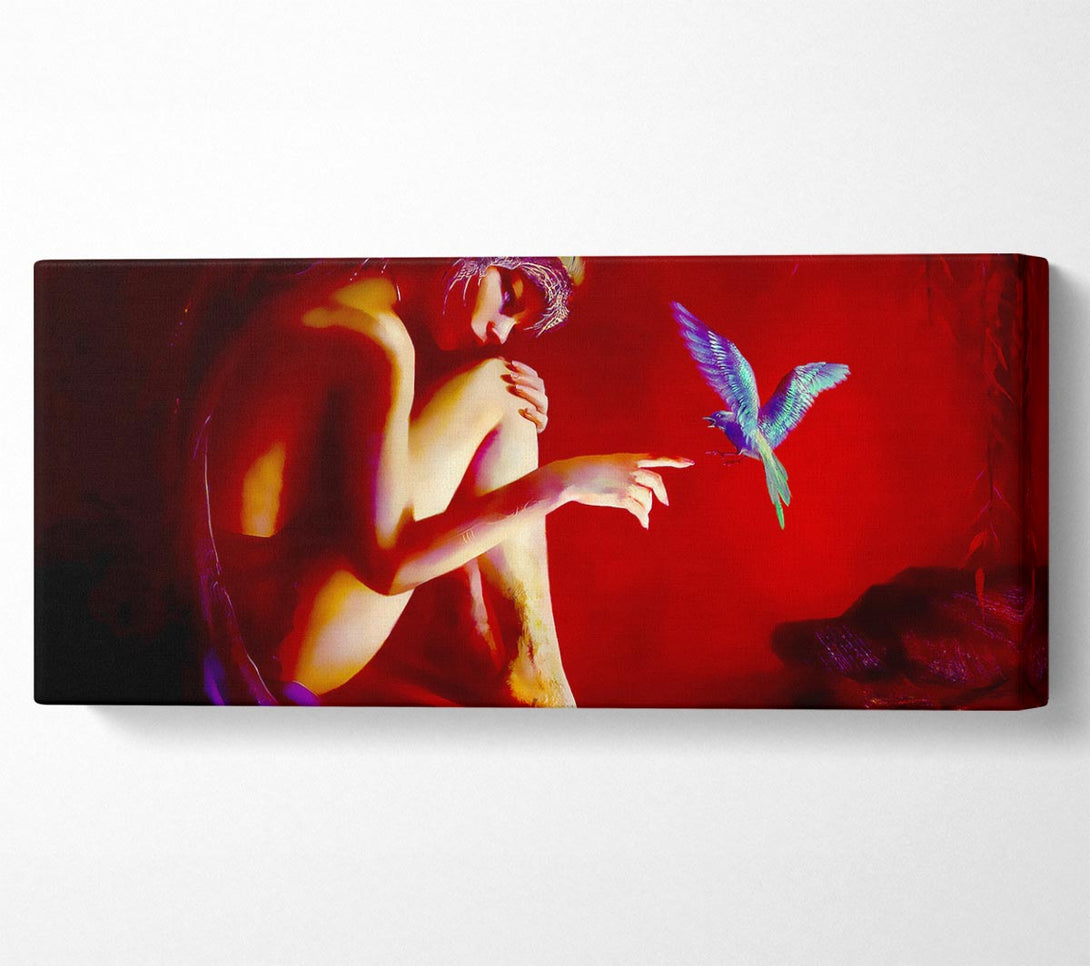 Fairy Bird canvas, printed on coated polyester canvas. Mounted on to a 44mm box frame, ready to hang.