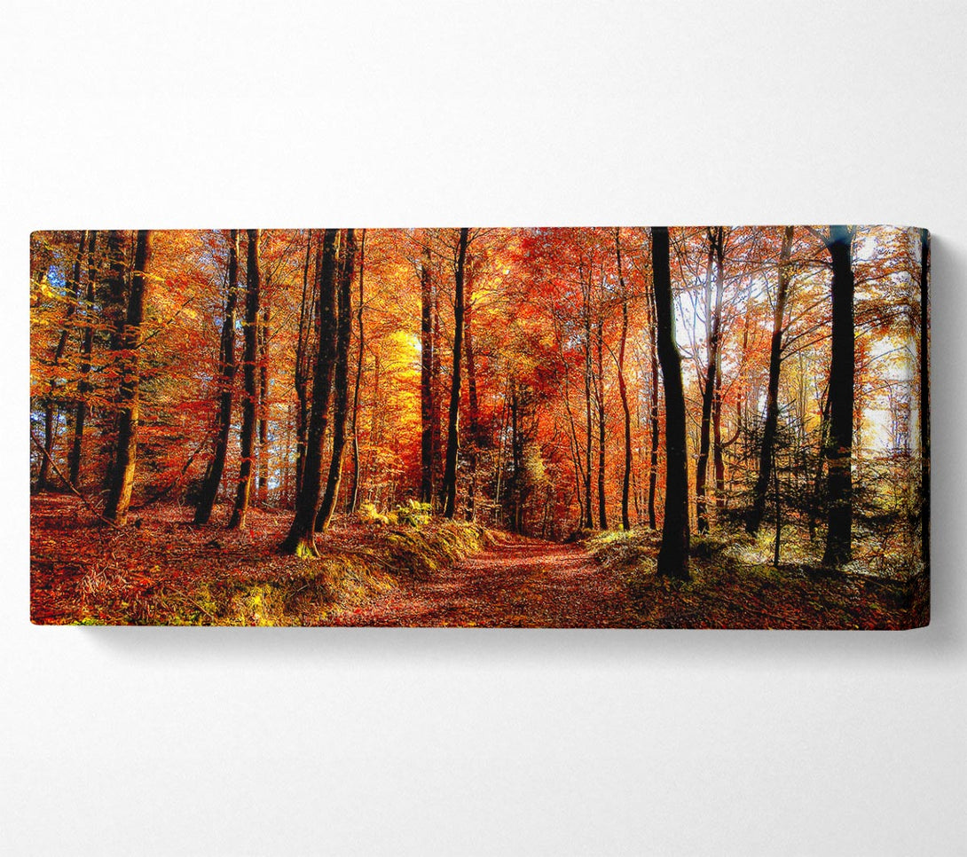 Picture of Fall Forest Path Panoramic Canvas Wall Art