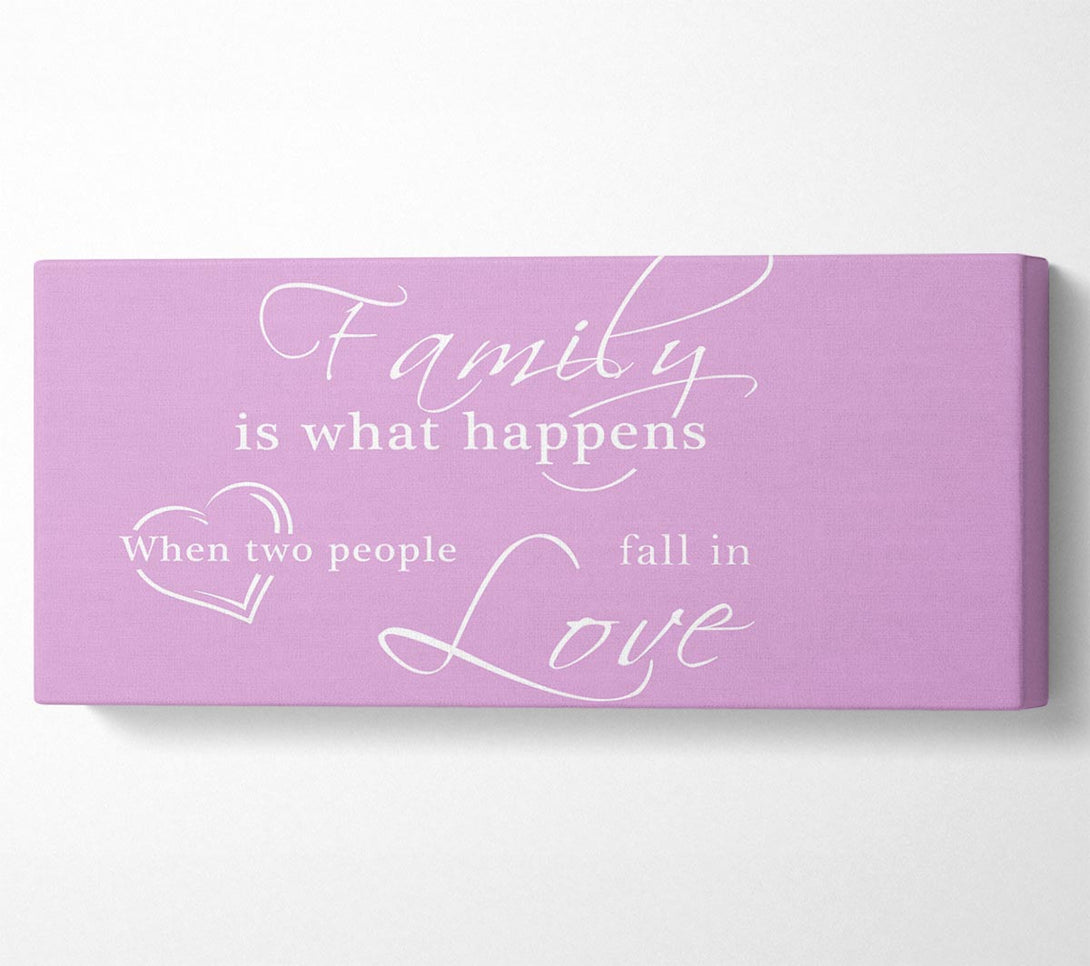 Family Quote Family Is What Happens Pink canvas, printed on coated polyester canvas. Mounted on to a 44mm box frame, ready to hang.