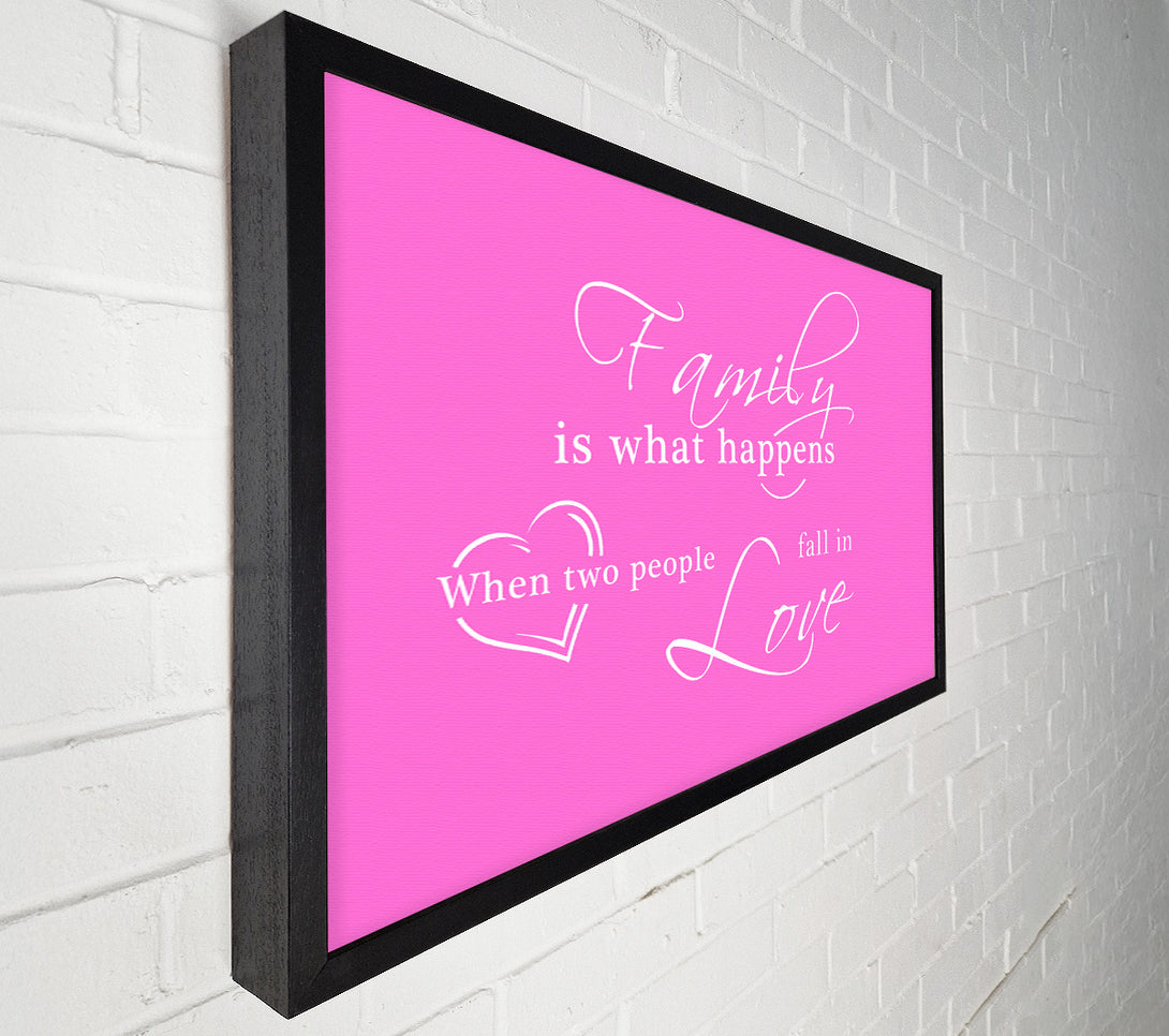A Canvas Print of Family Quote Family Is What Happens Vivid Pink Canvas Wall Art