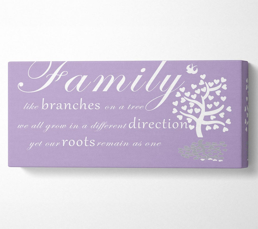 Picture of Family Quote Family Like Branches On A Tree Lilac Panoramic Canvas Wall Art