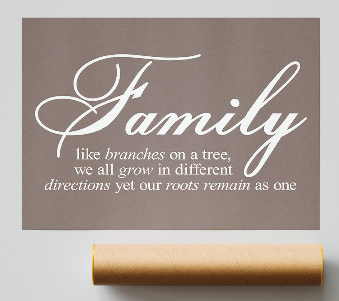 Our Family Quote Family We All Grow In Different Directions Beige Poster is printed 260 GSM premium lustre paper that offers vibrant colours and exceptional detail.