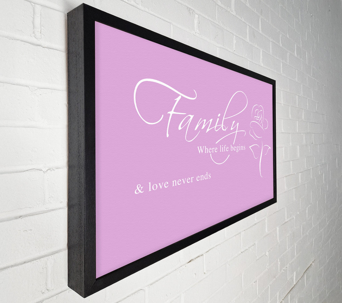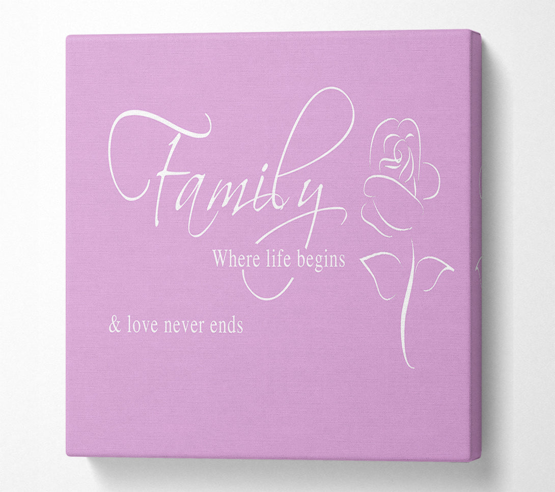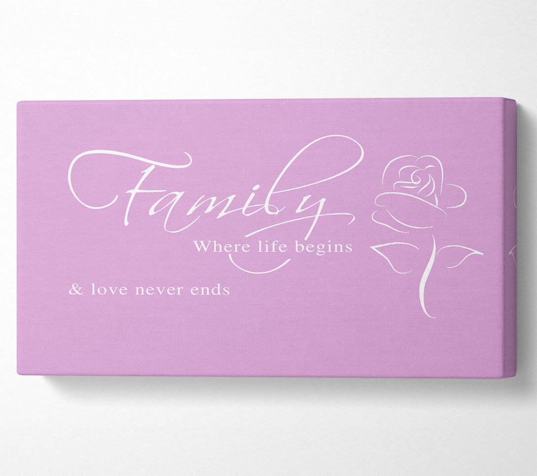 Family Quote Family Where Life Begins 1 Pink Canvas Wall Art