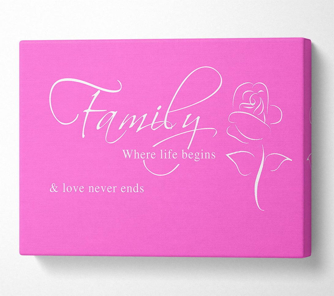 A Canvas Print of Family Quote Family Where Life Begins 1 Vivid Pink Canvas Print