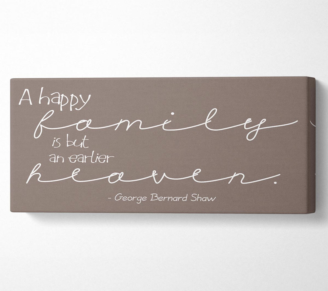 Family Quote George Bernard Shaw A Happy Family Beige canvas, printed on coated polyester canvas. Mounted on to a 44mm box frame, ready to hang.