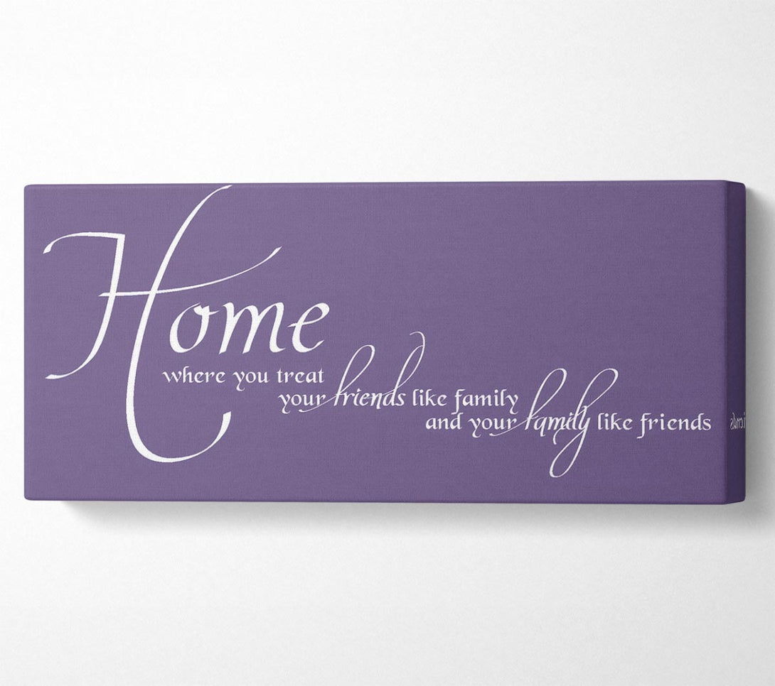 Picture of Family Quote Home Family Friends Lilac Panoramic Canvas Wall Art