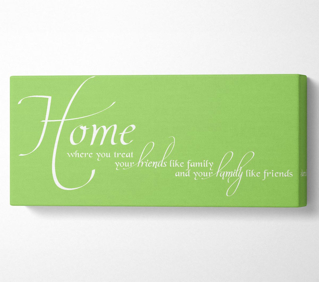 Picture of Family Quote Home Family Friends Lime Green Panoramic Canvas Wall Art
