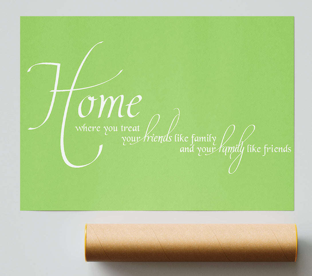 Our Family Quote Home Family Friends Lime Green Poster is printed 260 GSM premium lustre paper that offers vibrant colours and exceptional detail.