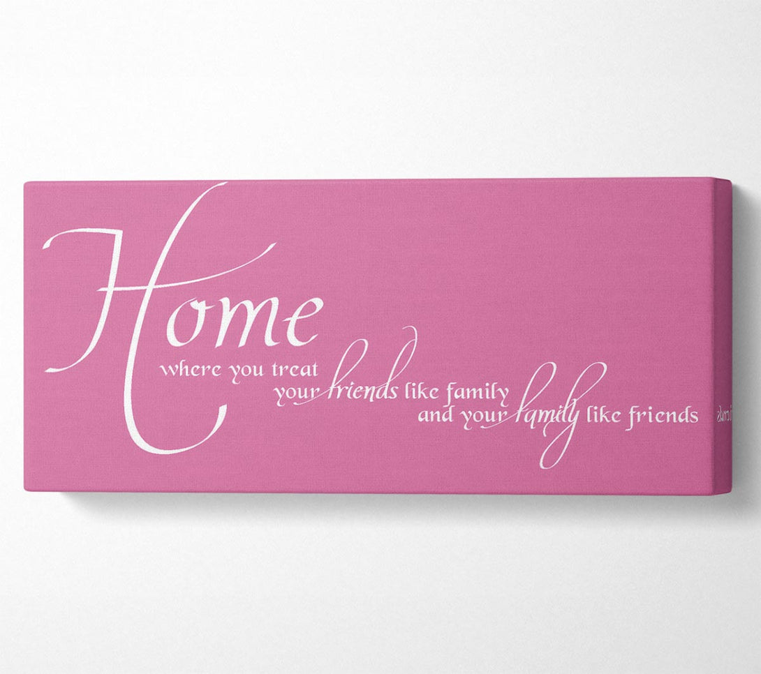 Picture of Family Quote Home Family Friends Pink Panoramic Canvas Wall Art