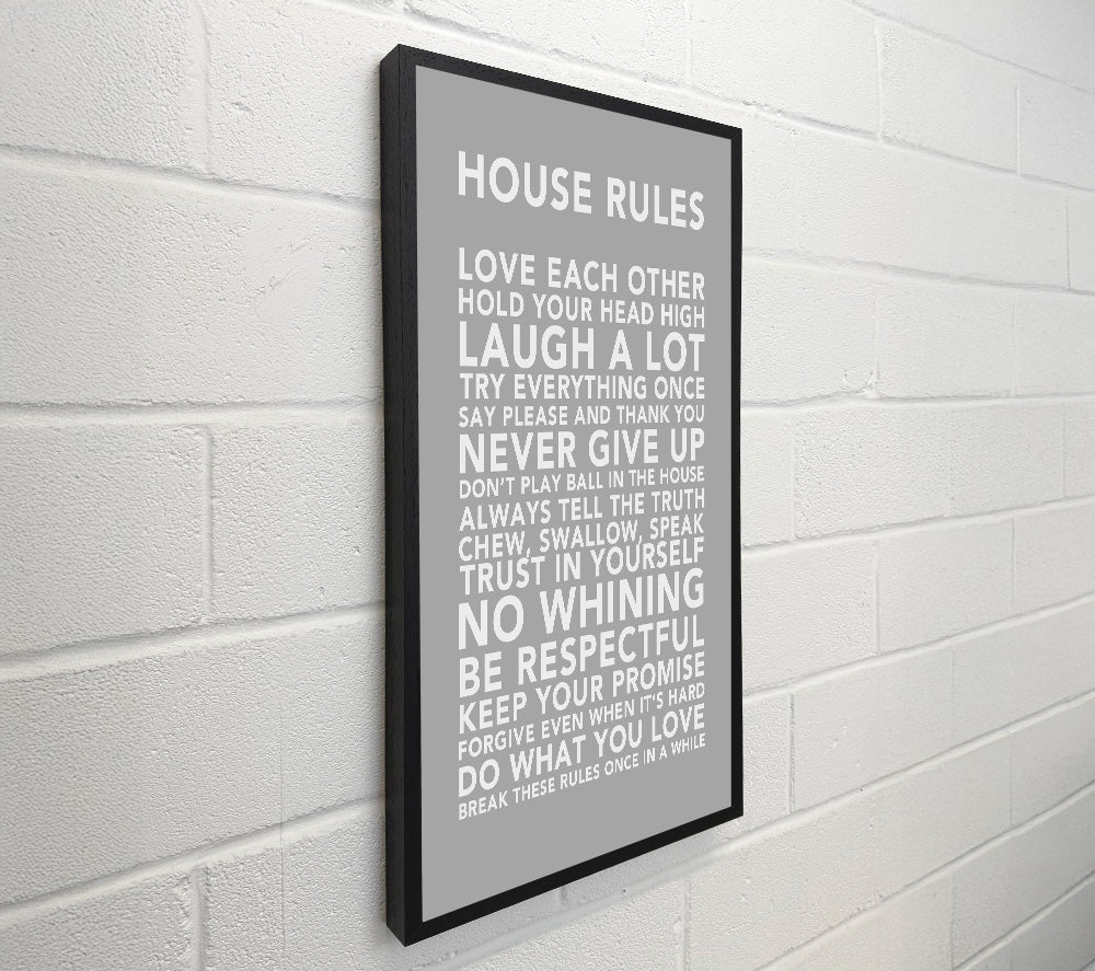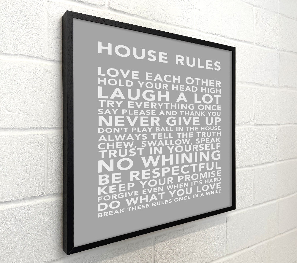 Family Quote House Rules 3 Grey White