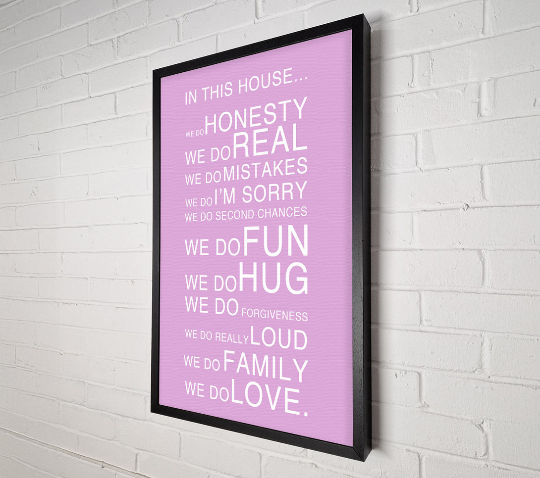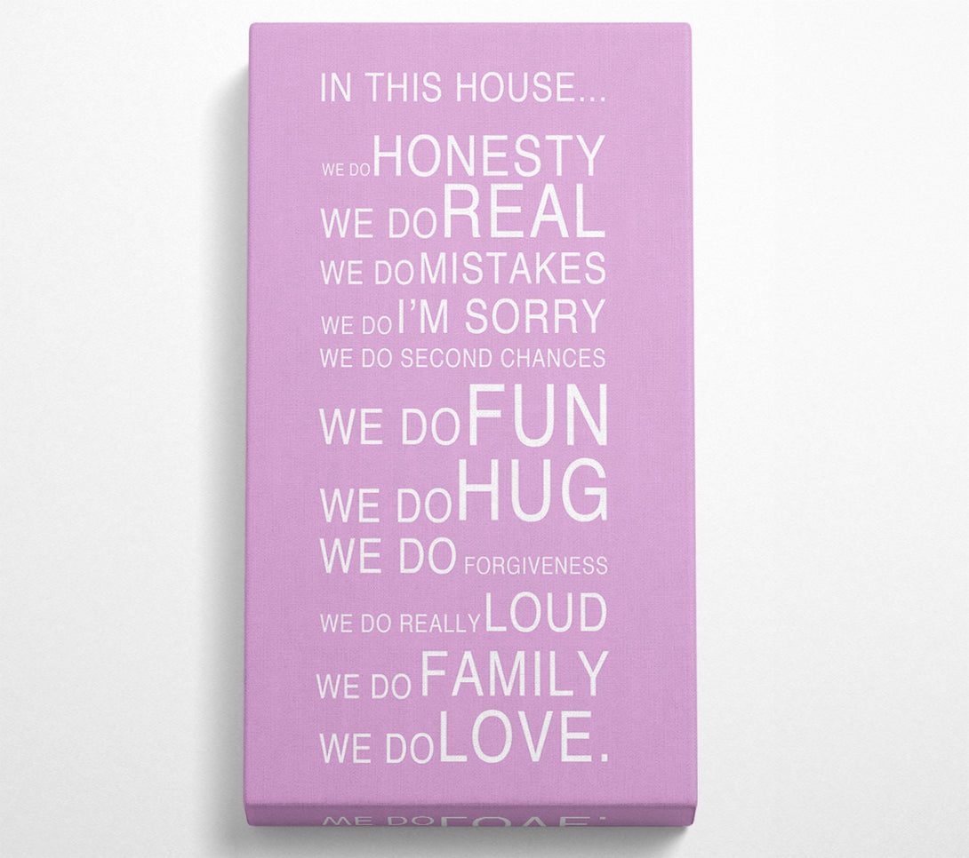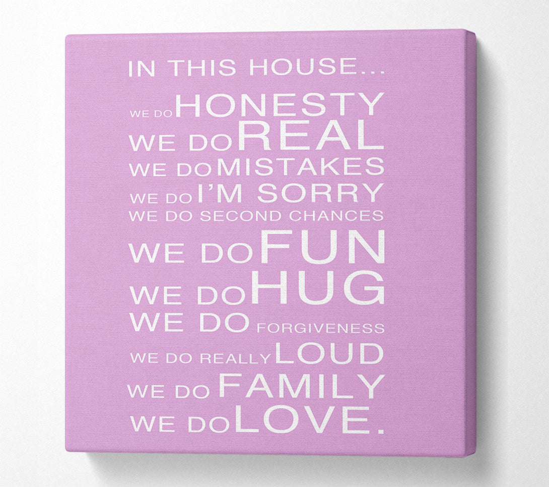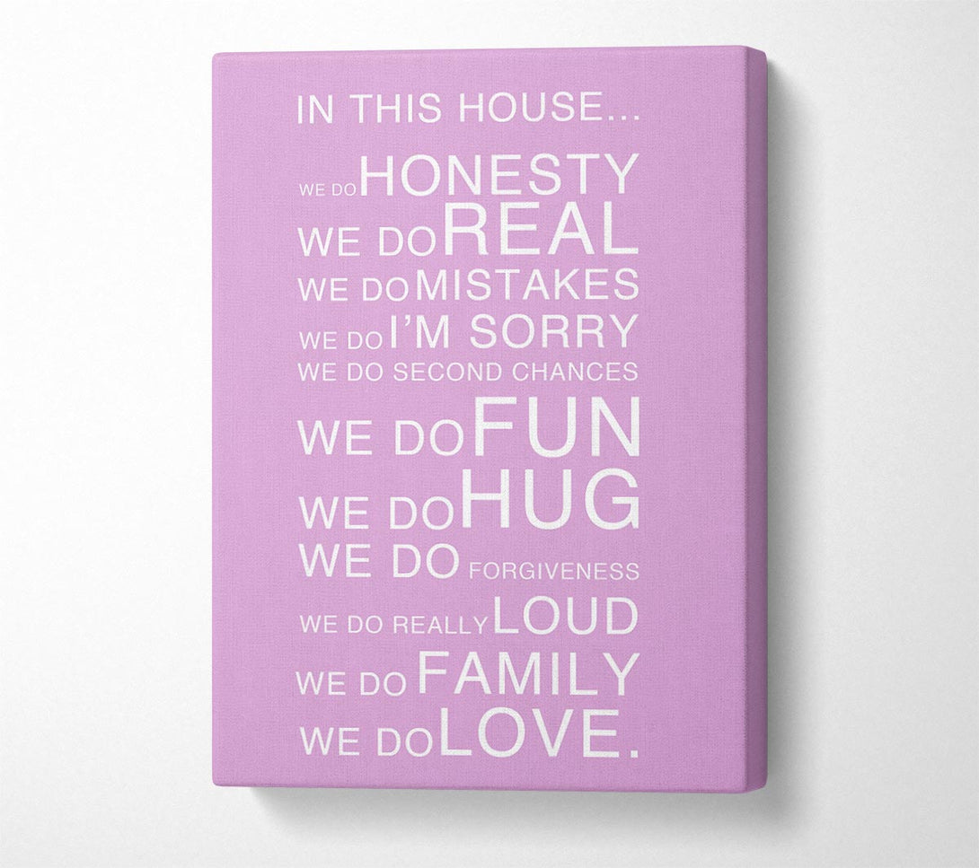Brighten up your home with the Family Quote In This House Pink Canvas Print. This charming wall art piece features a heartfelt family quote, creating a warm and inviting atmosphere in any room. The soft pink background adds a touch of elegance and blends seamlessly with various interior styles. Available in five sizes, from small to oversized, this canvas print can fit any wall space perfectly, whether it's a cozy nook or a grand living room. Made with high-quality materials, it ensures lasting beauty and durability. Easy to hang and maintain, this canvas print is a delightful addition to any home, reminding everyone of the love and togetherness that makes a house a home.
