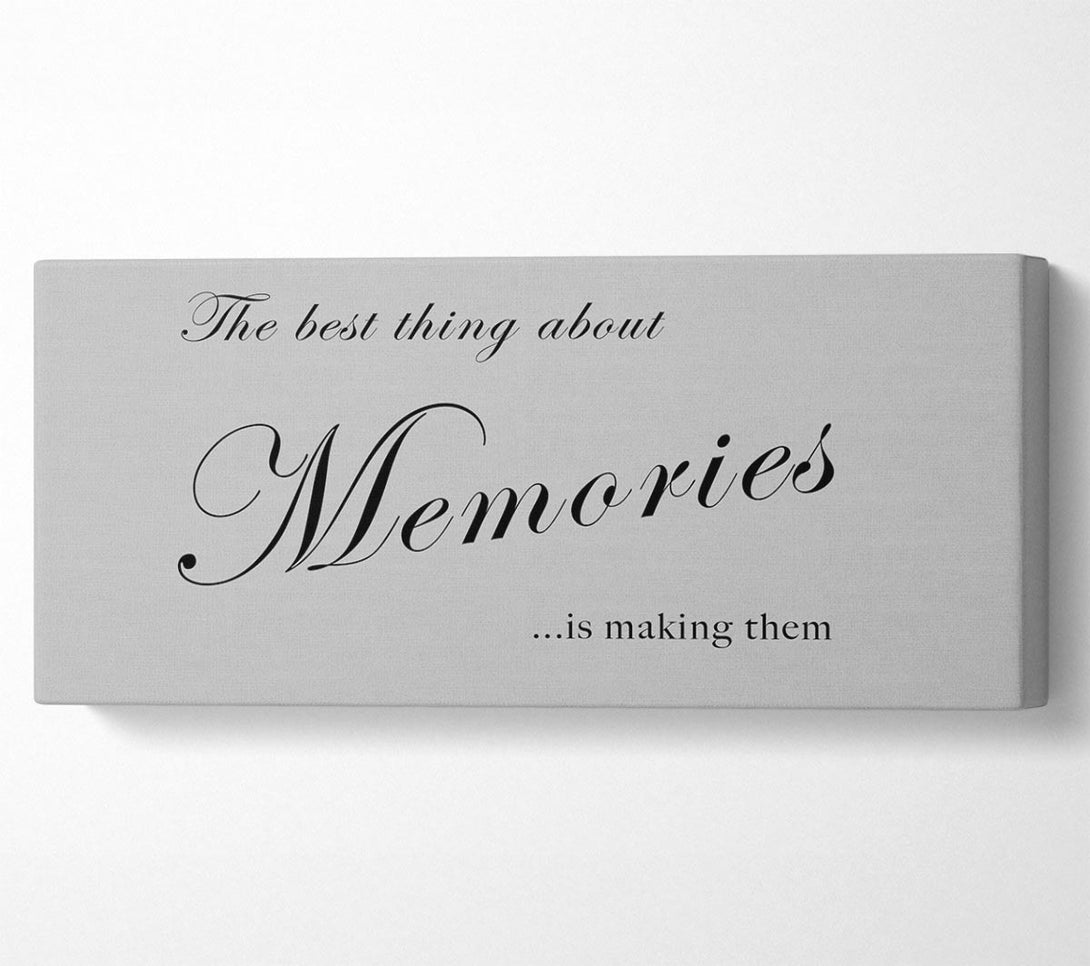 Family Quote The Best Thing About Memories Grey canvas, printed on coated polyester canvas. Mounted on to a 44mm box frame, ready to hang.
