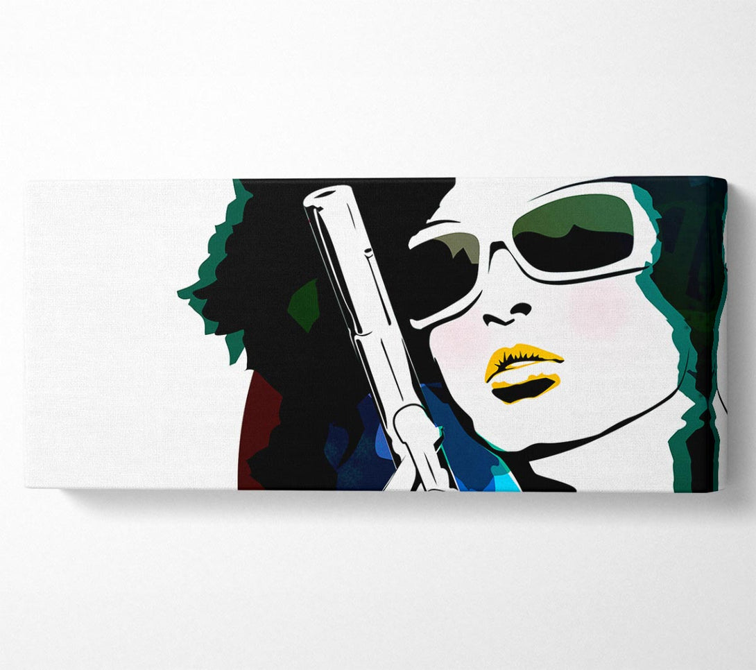 Female Weapon canvas, printed on coated polyester canvas. Mounted on to a 44mm box frame, ready to hang.