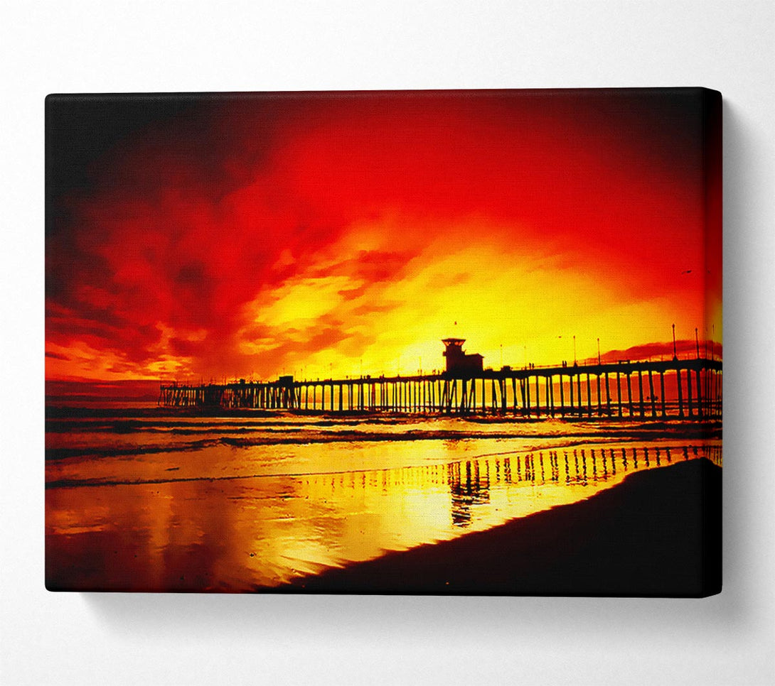 Crafted with high-quality canvas and fade-resistant inks, the print ensures lasting beauty. The canvas is stretched over a sturdy wooden frame, making it easy to hang and durable. Whether you're decorating your living room, bedroom, or office, the "Fire Skies Over The Pier" Canvas Print adds a touch of tranquility and elegance, making it a must-have for art lovers and those looking to enhance their wall decor.