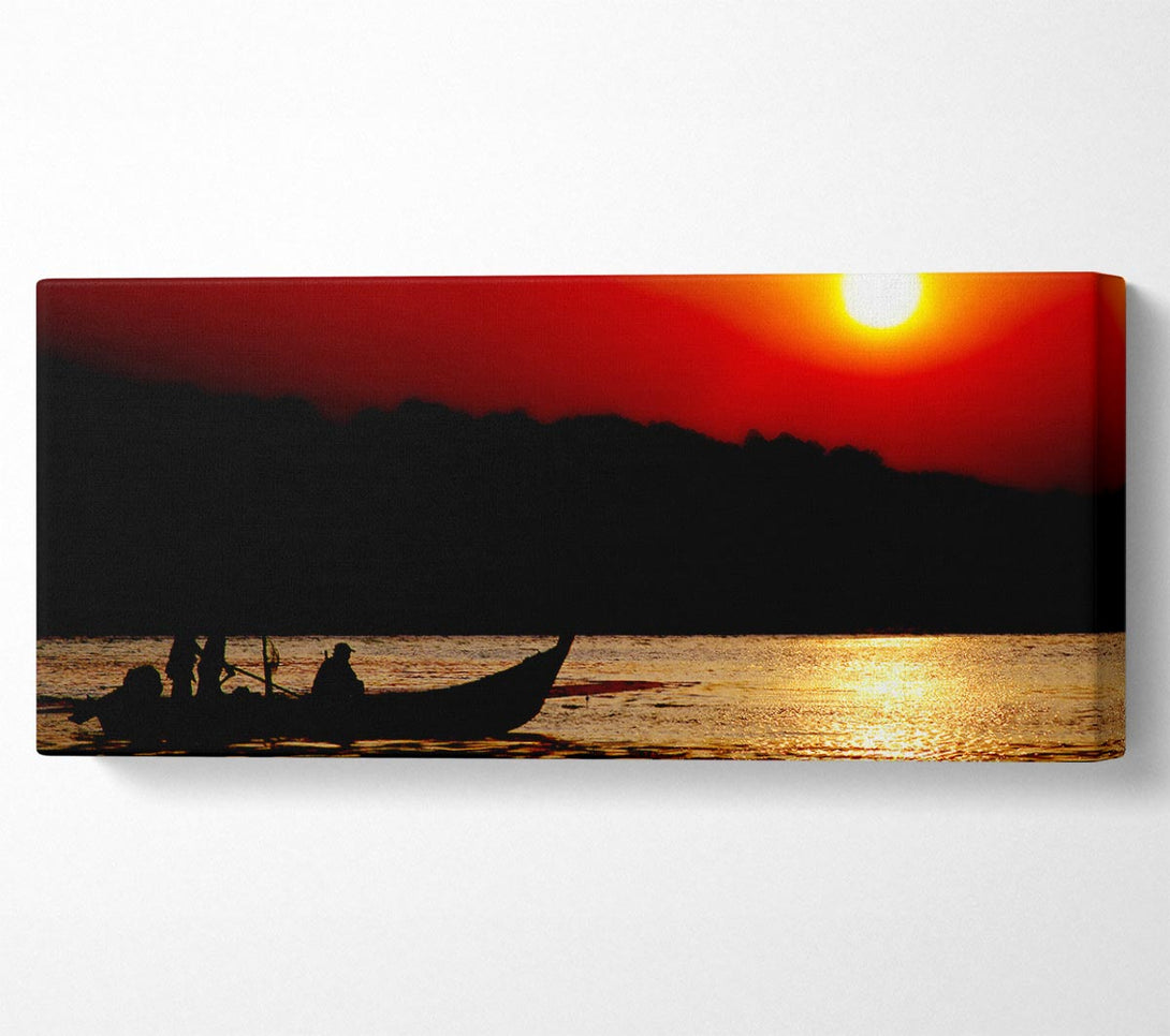 Picture of Fishing Under The Ocean Sun Panoramic Canvas Wall Art