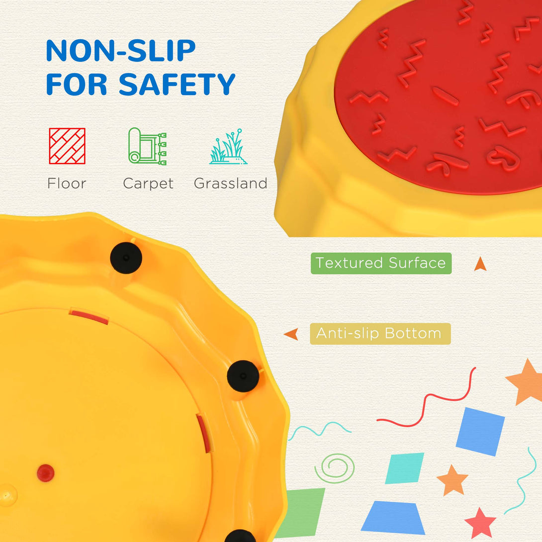 These Outsunny stepping stones and bridges are a fun activity for kids, helping them improve balance and coordination. With separate pieces, children can play, hop and jump across each stone making up different games. Its non-slip bottom keeps this toy secure, whilst the top surface is textured, reducing the risk of slips and falls. Once playtime is over, they can be stacked and stored, saving space and preventing clutter. It's an easy and practical way to keep kids happy.