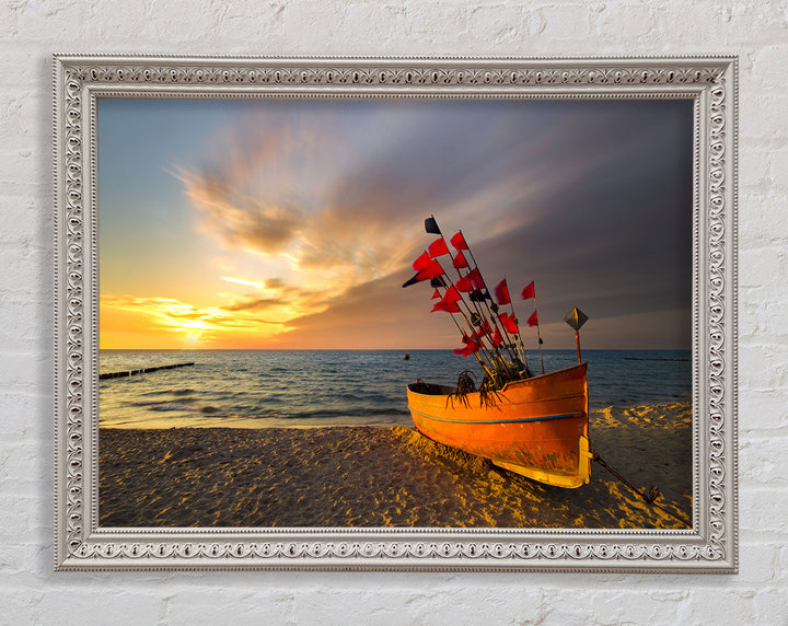 Add a touch of nautical charm to your home with our Flags in a Fishing Boat Framed Print. This stunning framed art captures the essence of a serene fishing scene, making it perfect for any coastal-inspired decor. Available in six sizes, from small to oversized, you can find the perfect fit for any space. Choose from a variety of colors to match your style. Each piece is handmade in the United Kingdom, ensuring top-notch craftsmanship and quality. Ready to hang straight out of the box, this framed print makes decorating a breeze. Elevate your living space with this beautiful and timeless piece of art.