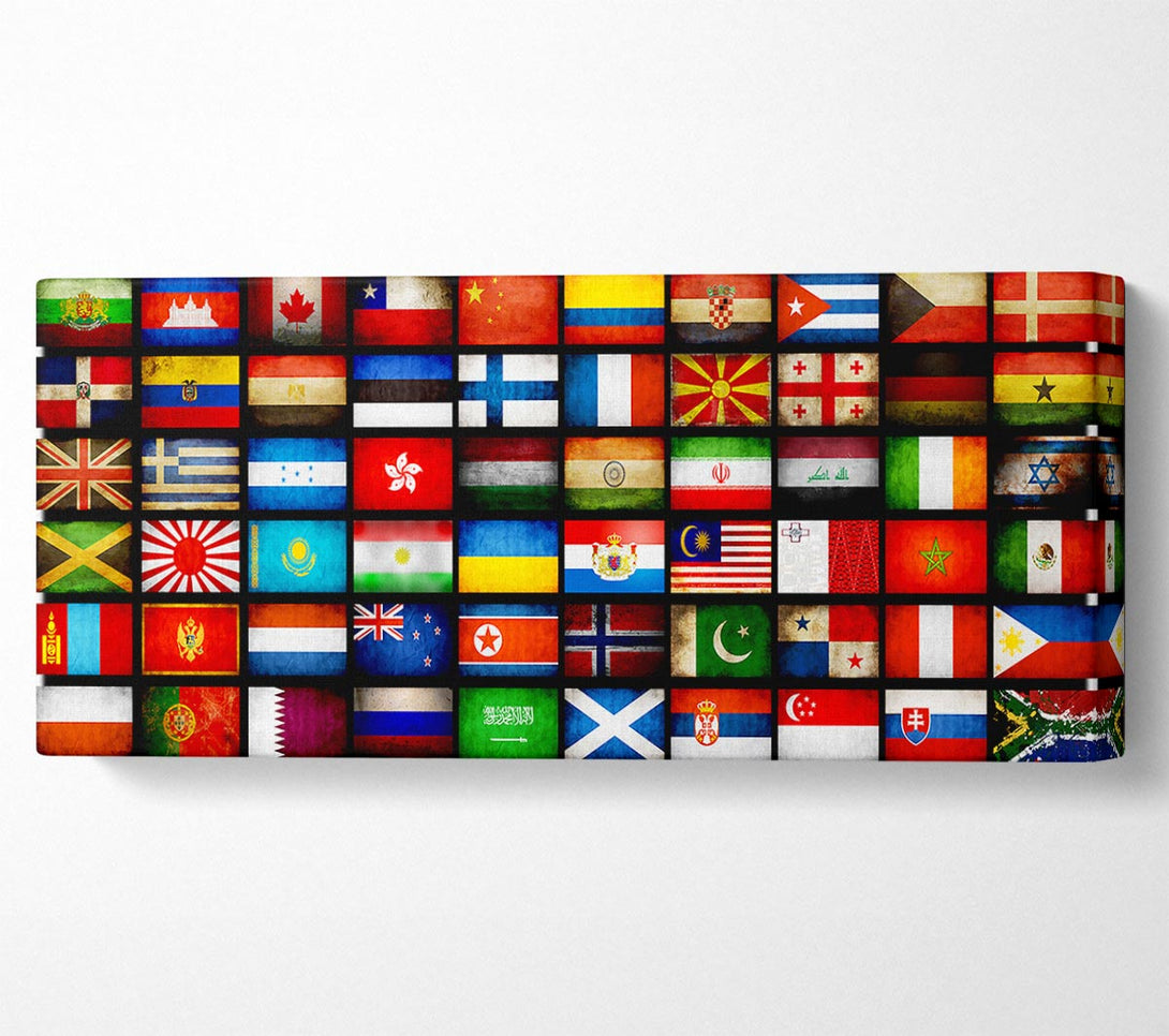 Flags Of The World canvas, printed on coated polyester canvas. Mounted on to a 44mm box frame, ready to hang.