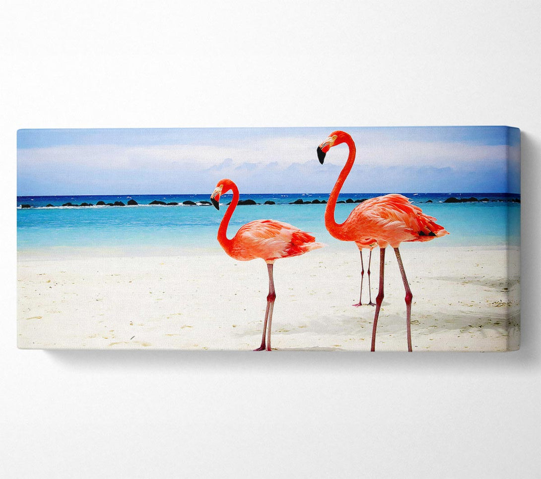 Flamingo Paradise canvas, printed on coated polyester canvas. Mounted on to a 44mm box frame, ready to hang.