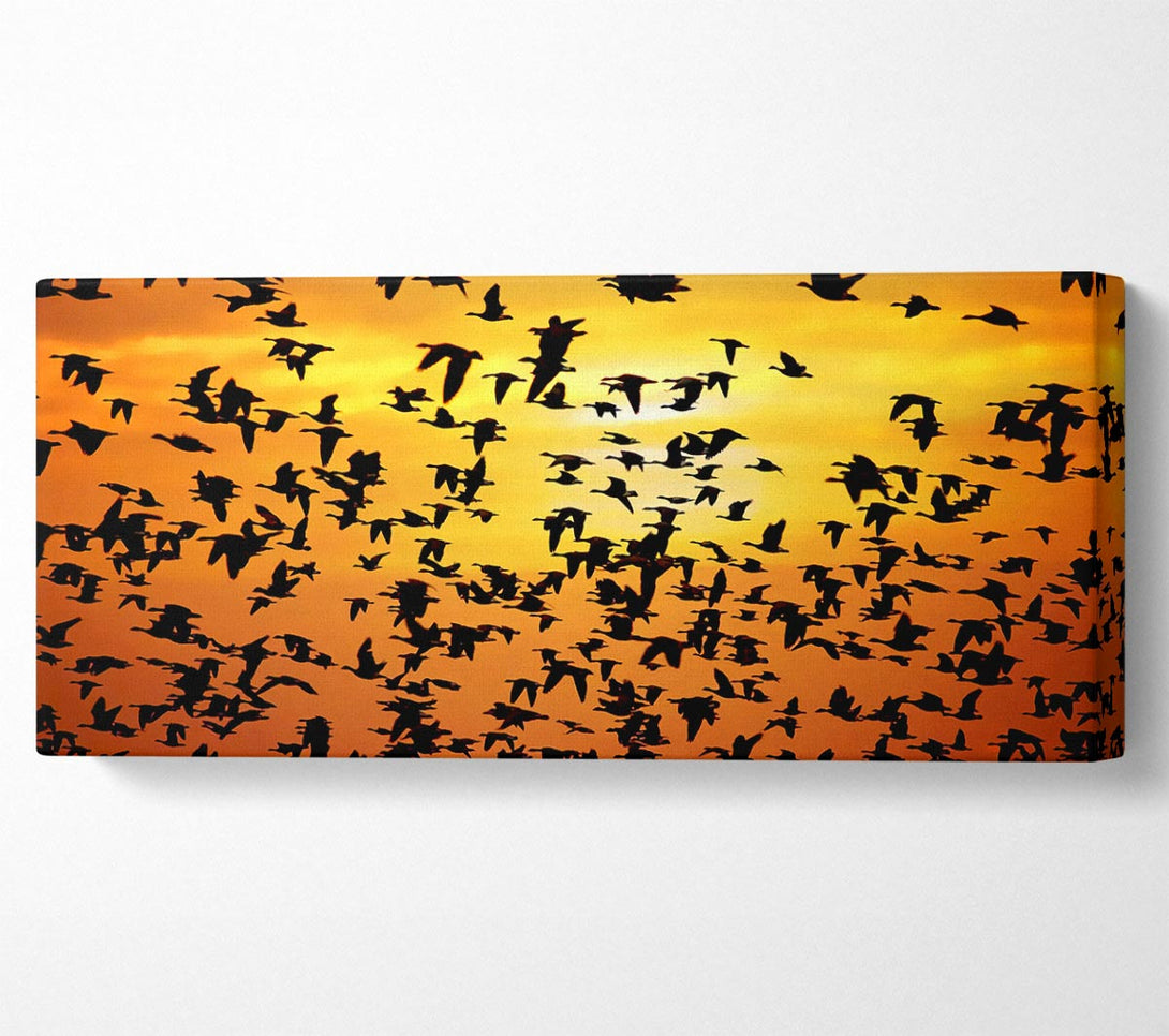 Picture of Flight Of The Golden Birds Panoramic Canvas Wall Art