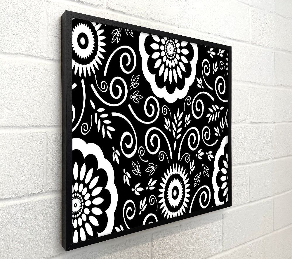 Flock Of Flowers White On Black