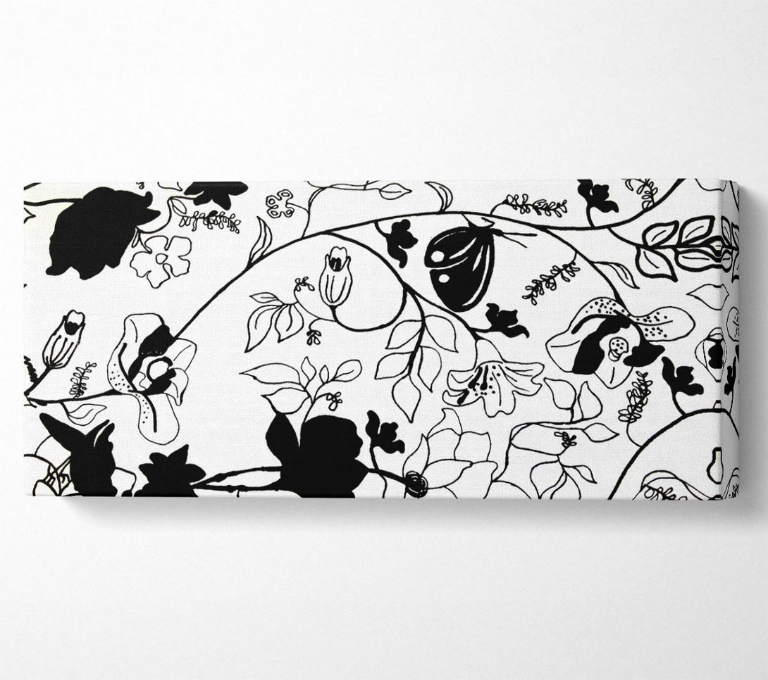Picture of Floral Desire Black On White Panoramic Canvas Wall Art