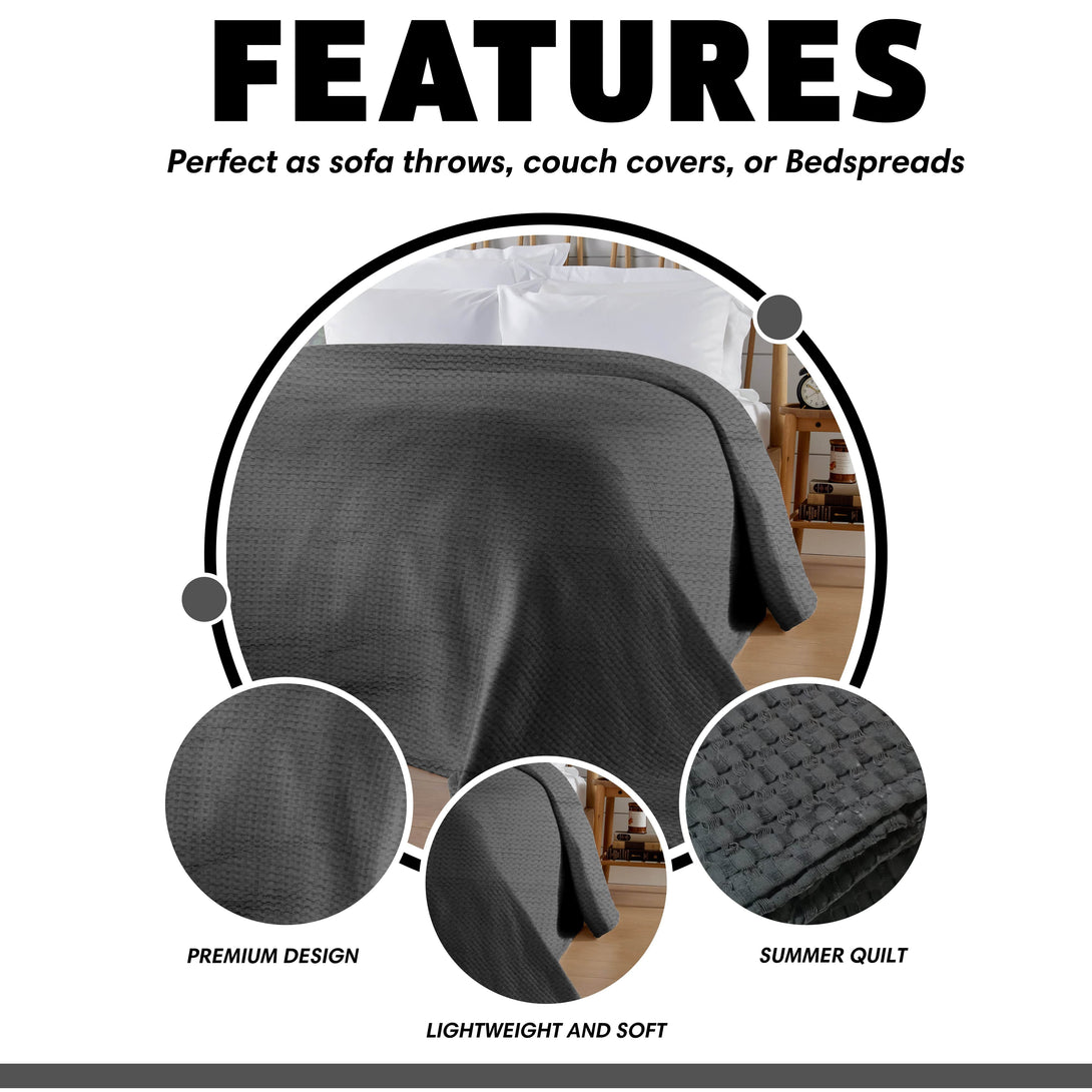 Description: Crafted from 100% premium cotton, this checked bedspread throw offers a soft, breathable texture that provides comfort and warmth. The classic checked pattern adds timeless elegance, easily complementing a variety of home decors.