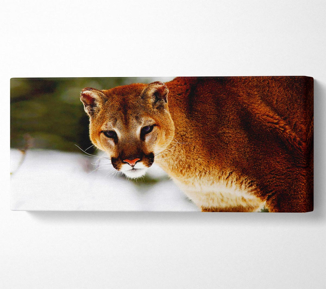 Picture of Florida Panther In The Snow Panoramic Canvas Wall Art