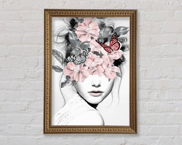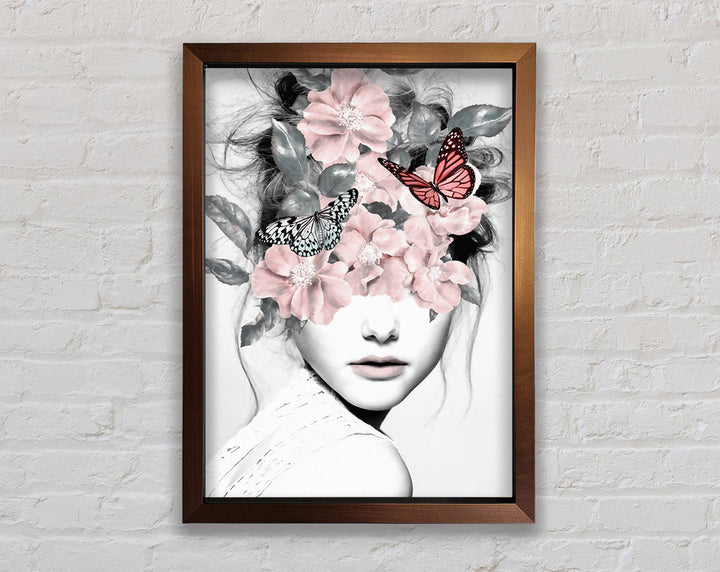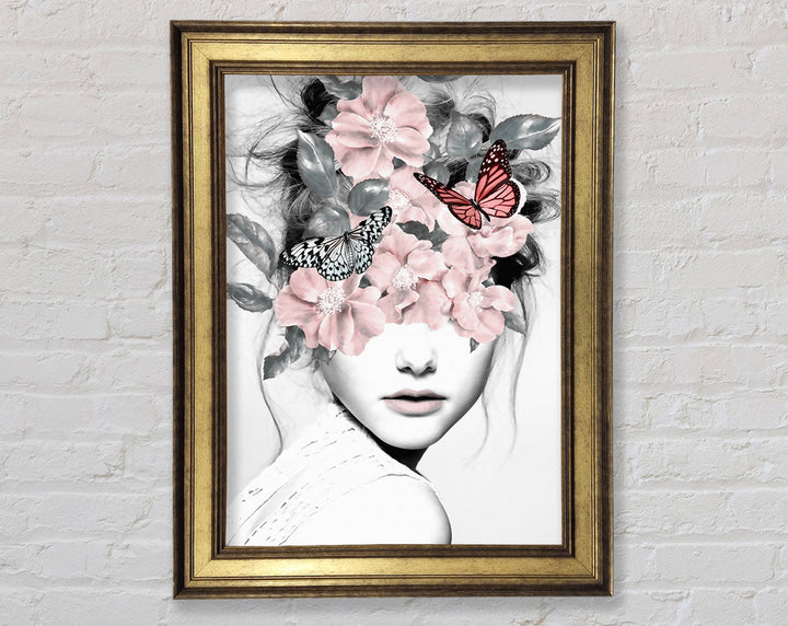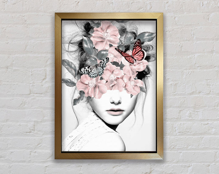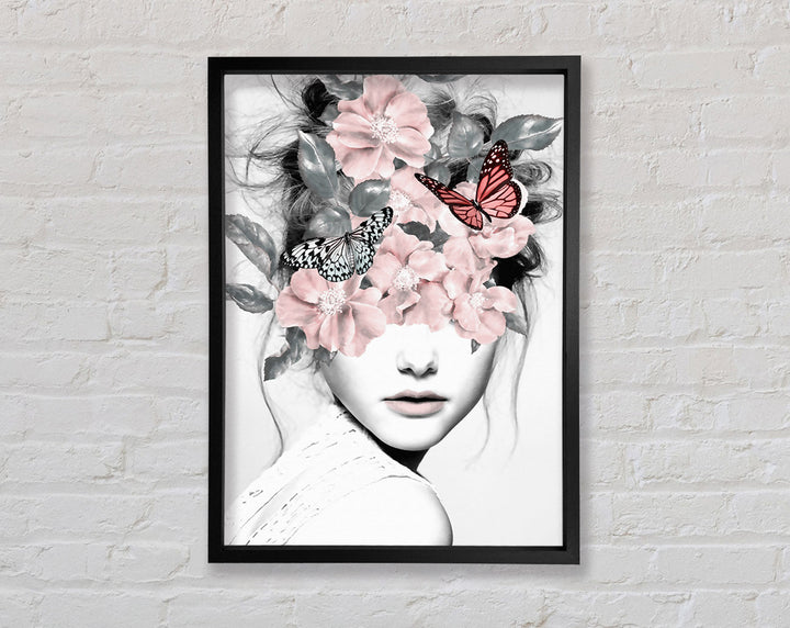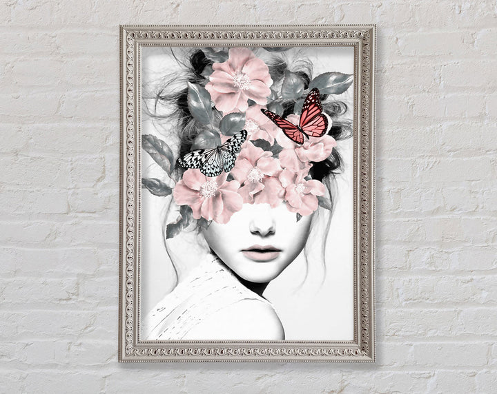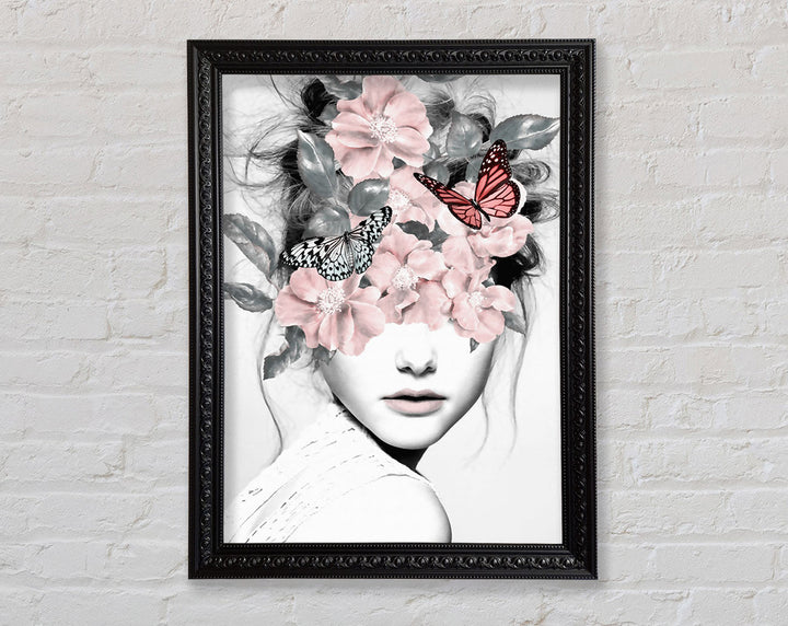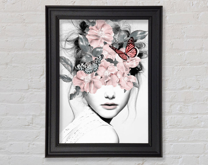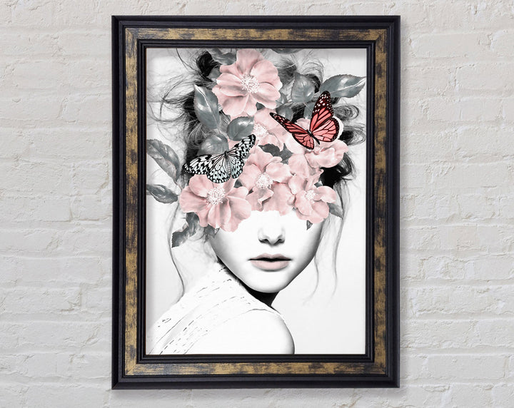 Flower And Butterfly Face Framed Print