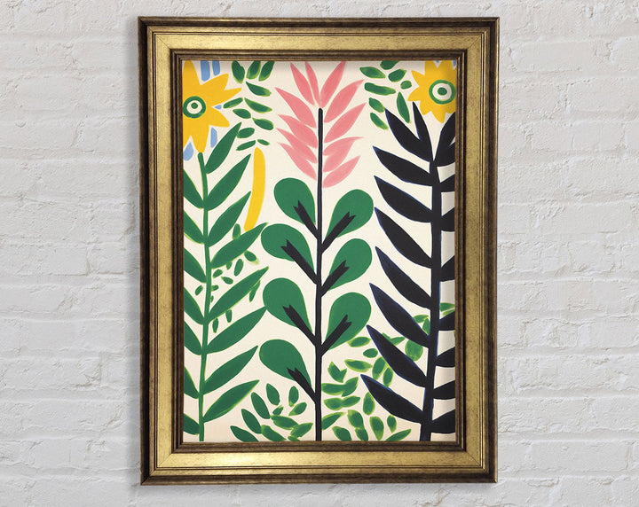 Flower And Leaves Minimalist Brush Strokes Framed Print