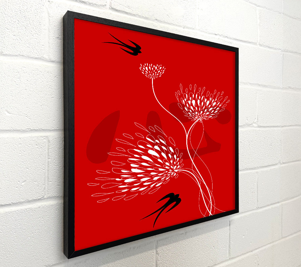 Flower Doves White On Red