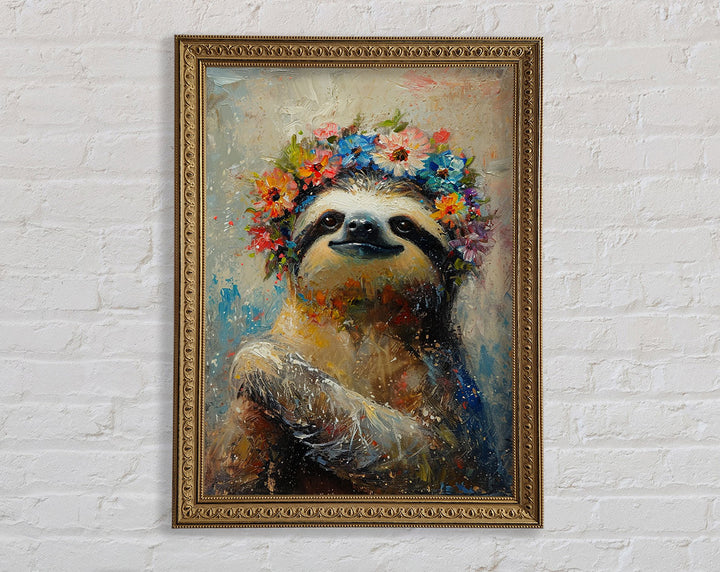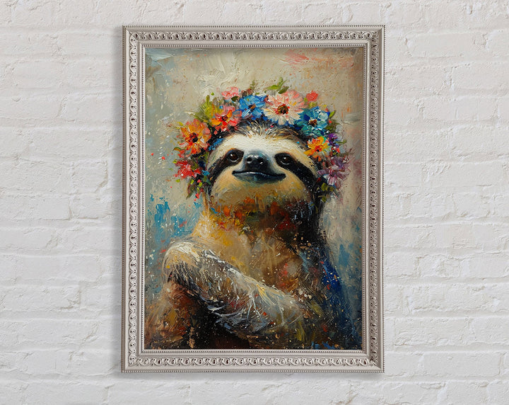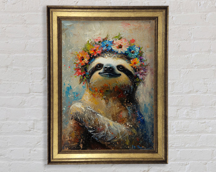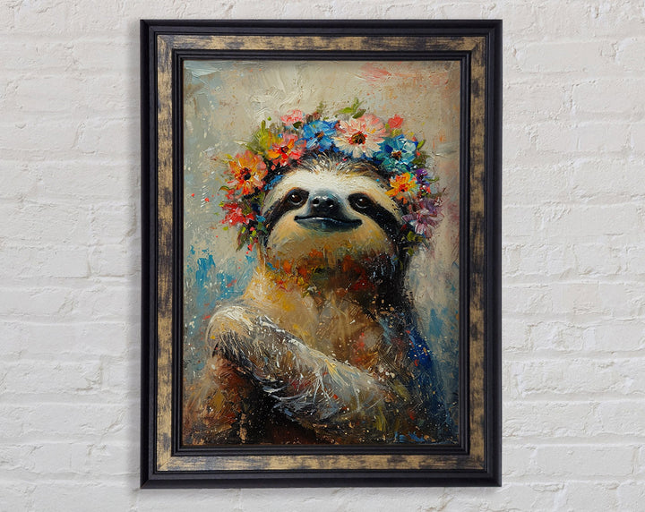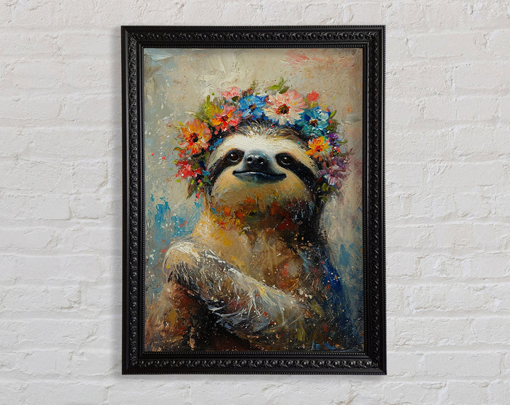 Flower Sloth Framed Print