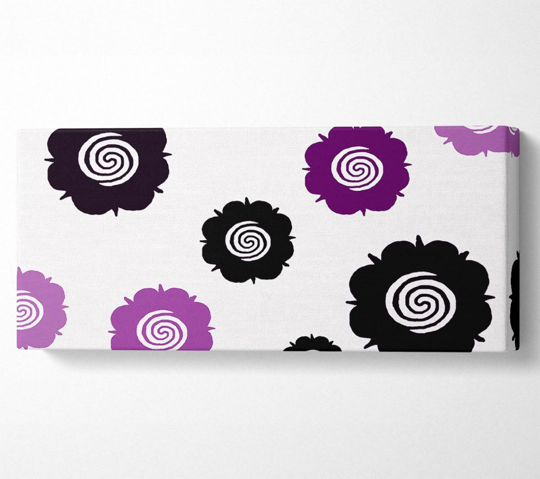 Flowers Purple On White canvas, printed on coated polyester canvas. Mounted on to a 44mm box frame, ready to hang.