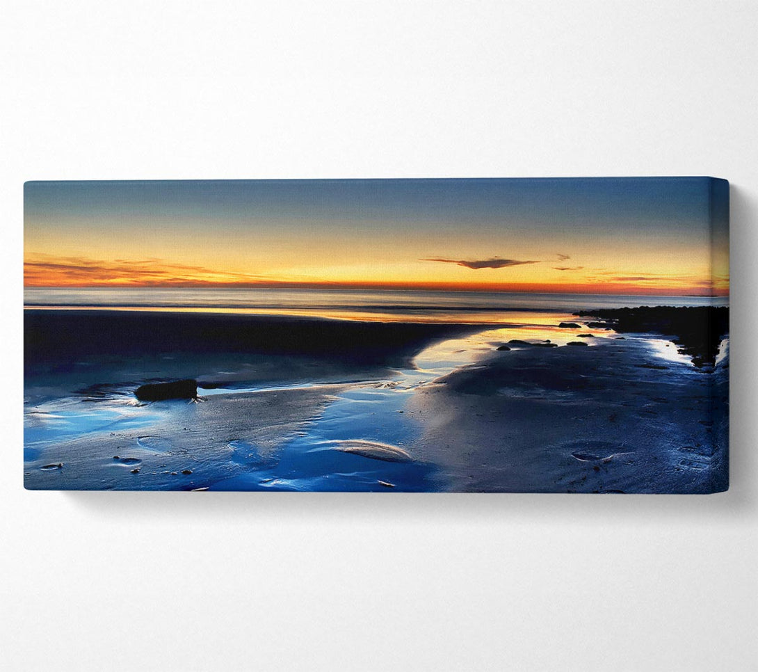 Footprints To The Ocean canvas, printed on coated polyester canvas. Mounted on to a 44mm box frame, ready to hang.
