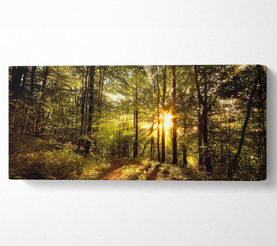 Forest In Late Afternoon canvas, printed on coated polyester canvas. Mounted on to a 44mm box frame, ready to hang.