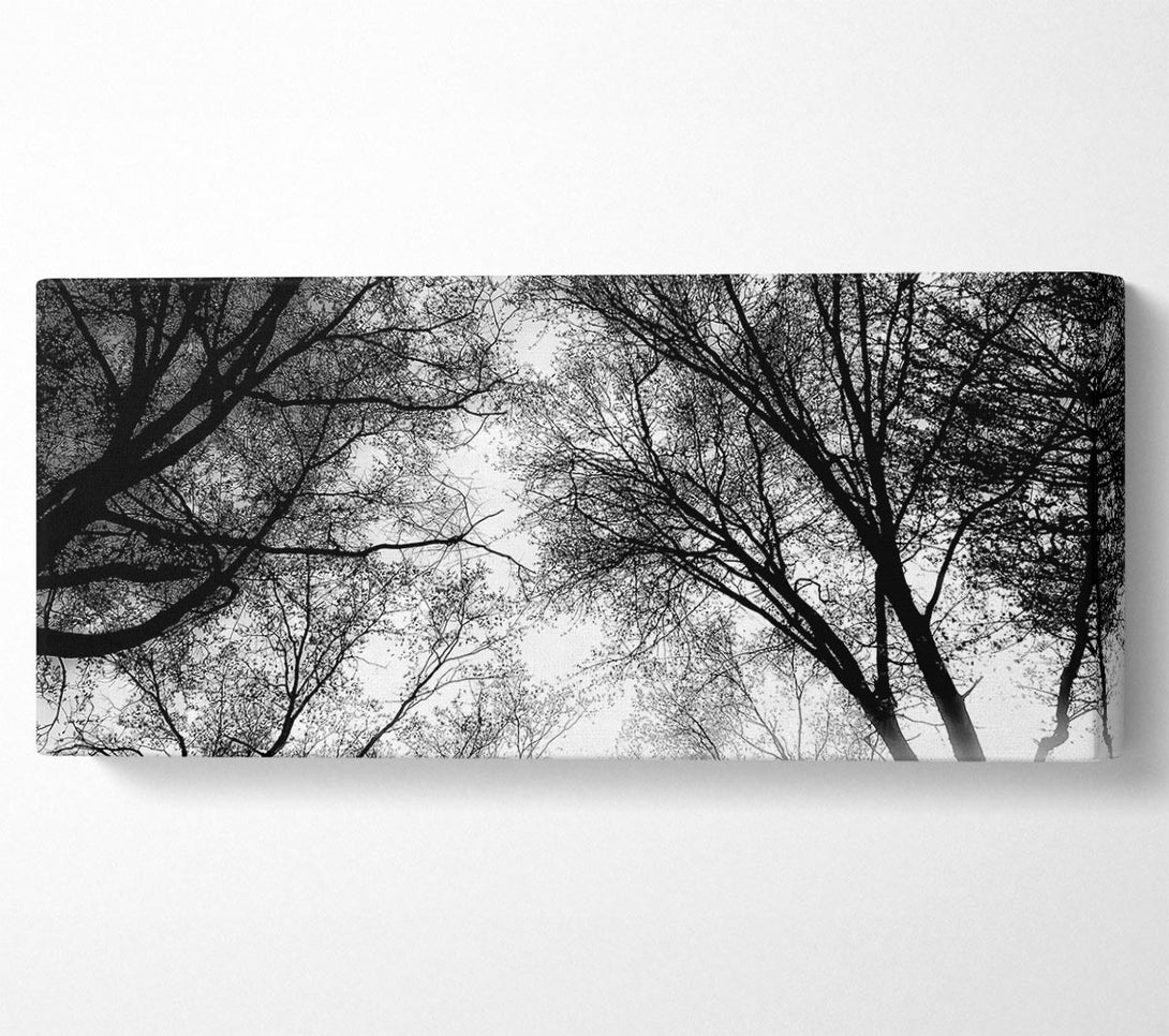 Forest Skies B n W canvas, printed on coated polyester canvas. Mounted on to a 44mm box frame, ready to hang.