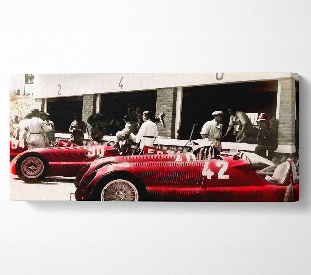 Formula One Classic Pit Stops canvas, printed on coated polyester canvas. Mounted on to a 44mm box frame, ready to hang.