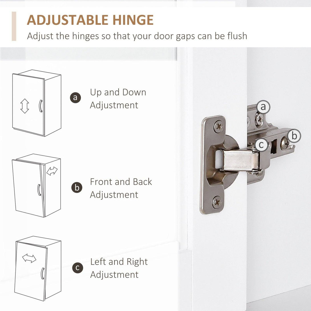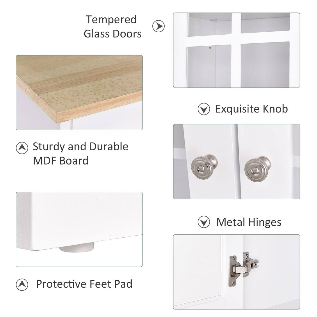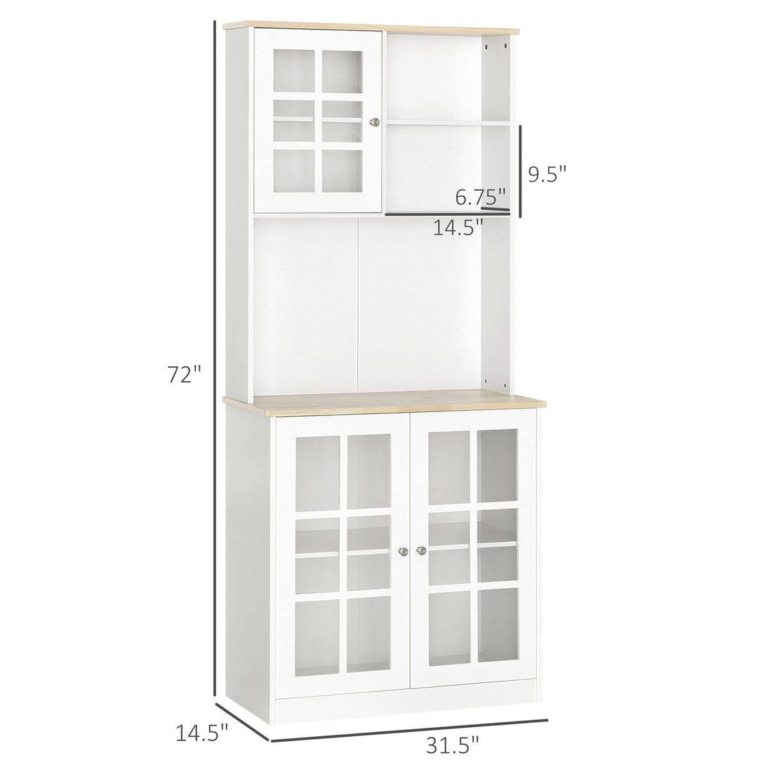 Take the effort out of organising your home with this free standing kitchen units from HOMCOM. Pure white in finish to brighten up your home instantly, thick MDF frame for a structure which is tough against everyday use, with a smooth coating all over protection against light marks. Generous in size, the kitchen dresser features different storage compartments – a large bottom cabinet with middle shelf, a middle countertop, a small top cupboard with an adjustable shelf and two top small shelves.